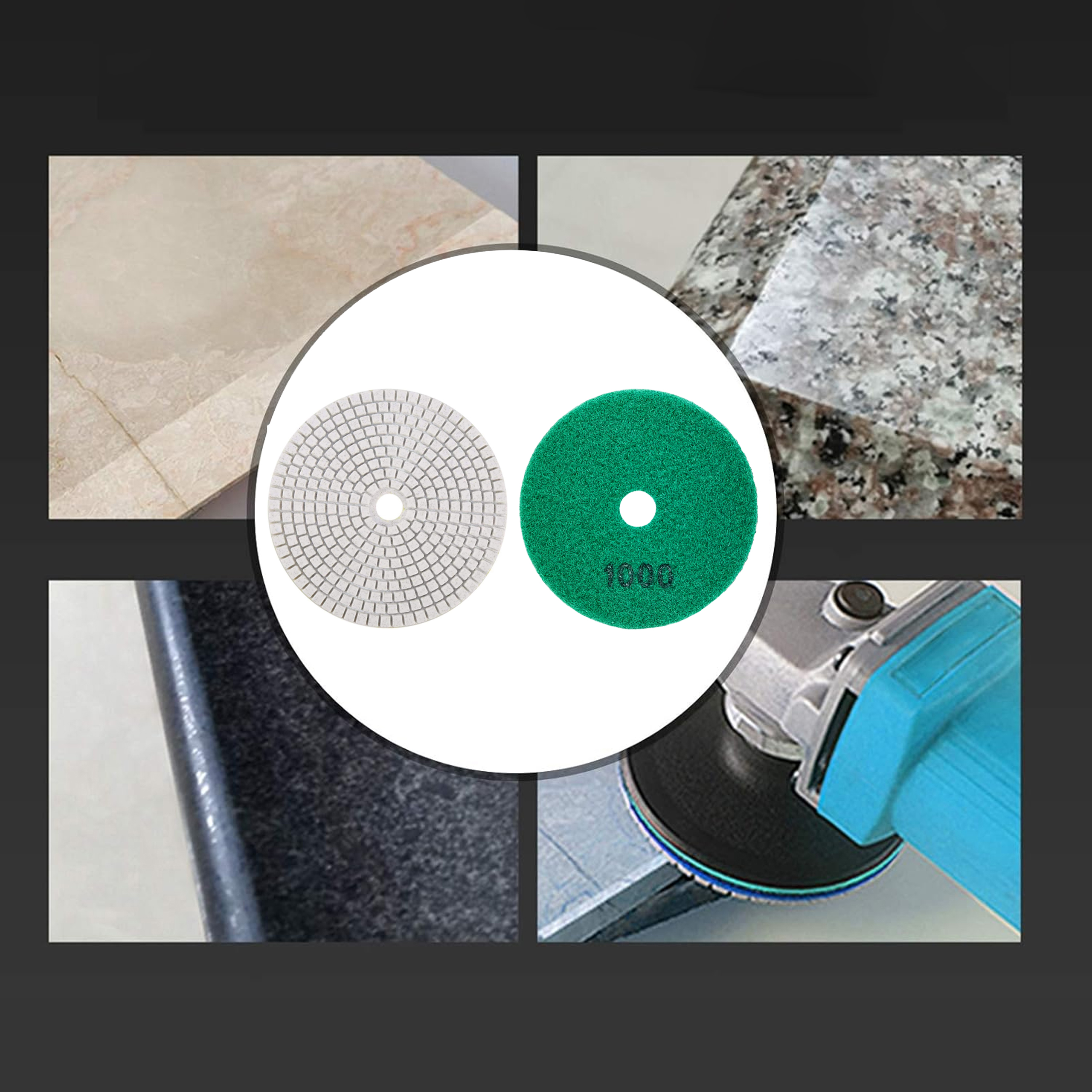 10x Tarcza Diamentowa Polerska 80mm do Szlifowania Gresu Płytek Na Rzep 1000