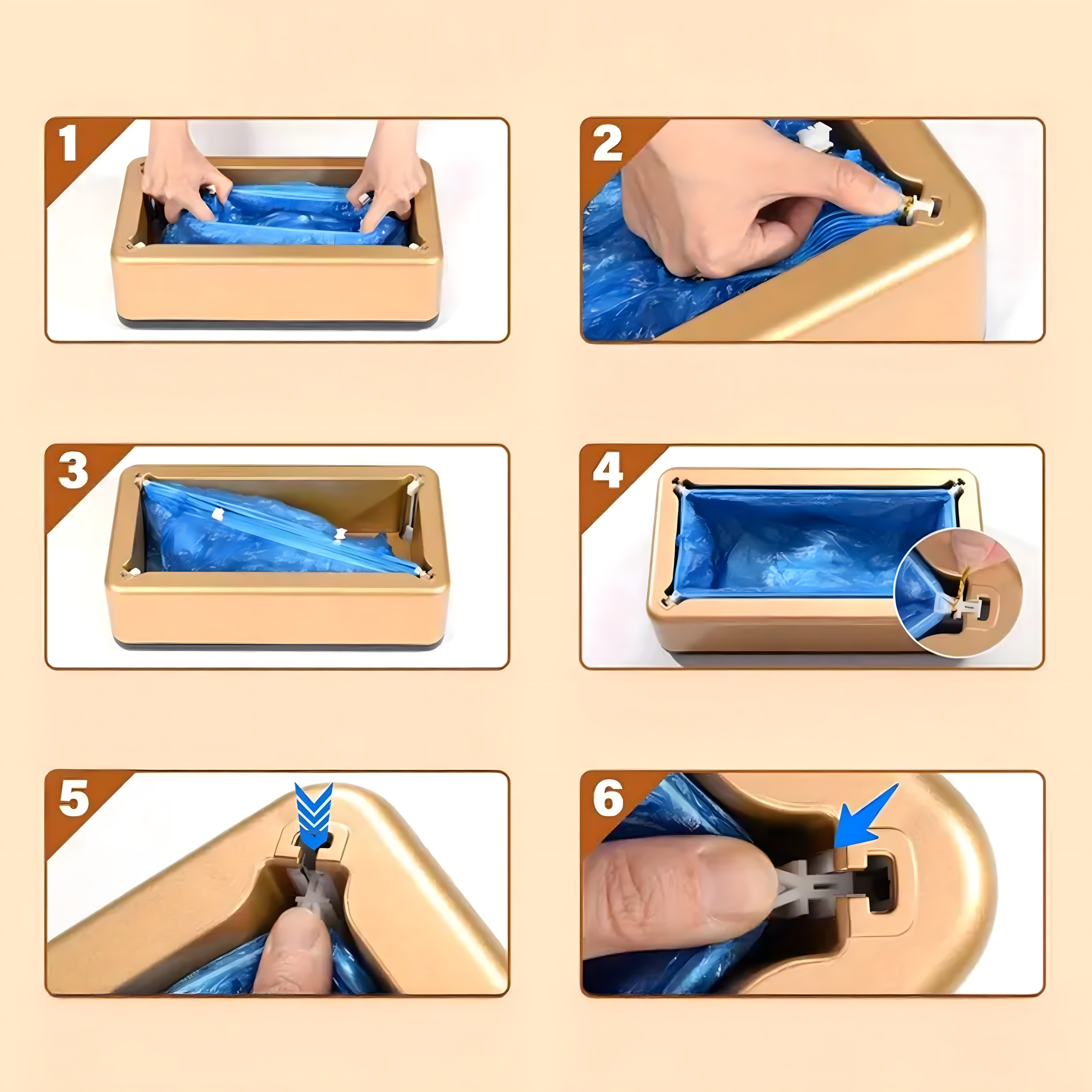 Automatyczny dozownik ochraniaczy na buty – higieniczne i bezdotykowe zakładanie foliowych ochraniaczy. Idealny do szpitali, przedszkoli, biur i domów. Nie wymaga prądu, prosty w obsłudze. W zestawie 20 worków.