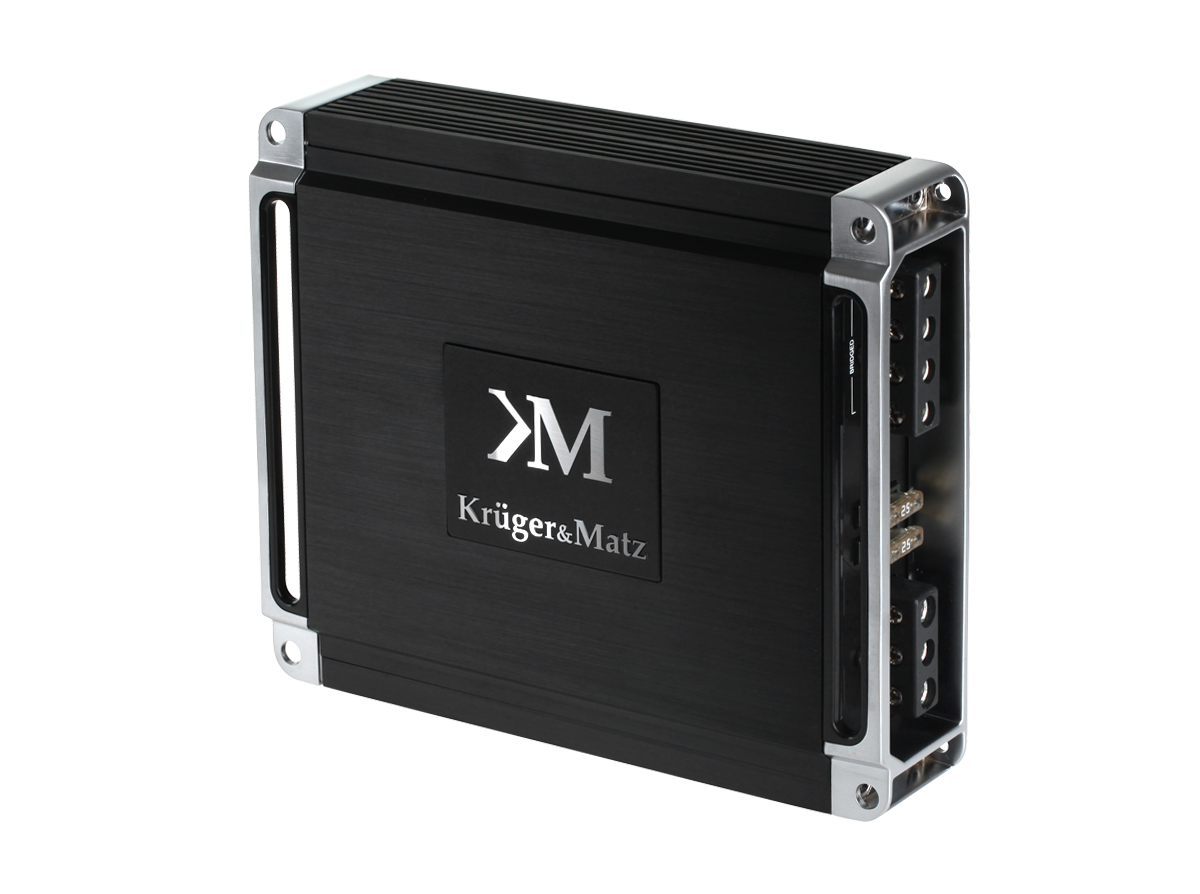 Wzmacniacze Kruger&Matz to połączenie odpowiednich parametrów mocy, stabilnego działania i czystego brzmienia. Kanały szerokopasmowe we wzmacniaczach zapewniają czysty dźwięk o niskich zniekształceniach oraz generują potężną dawkę mocy, zgodną ze standardem klasy D. W stopniach mocy zastosowano przełączane tranzystory o dużej obciążalności pozwalające uzyskać dynamikę i sprawność na poziomie 85-90% przy małych zniekształceniach. Wysoka sprawność umożliwia stosowanie mniejszych zasilaczy, radiatorów i obudów.