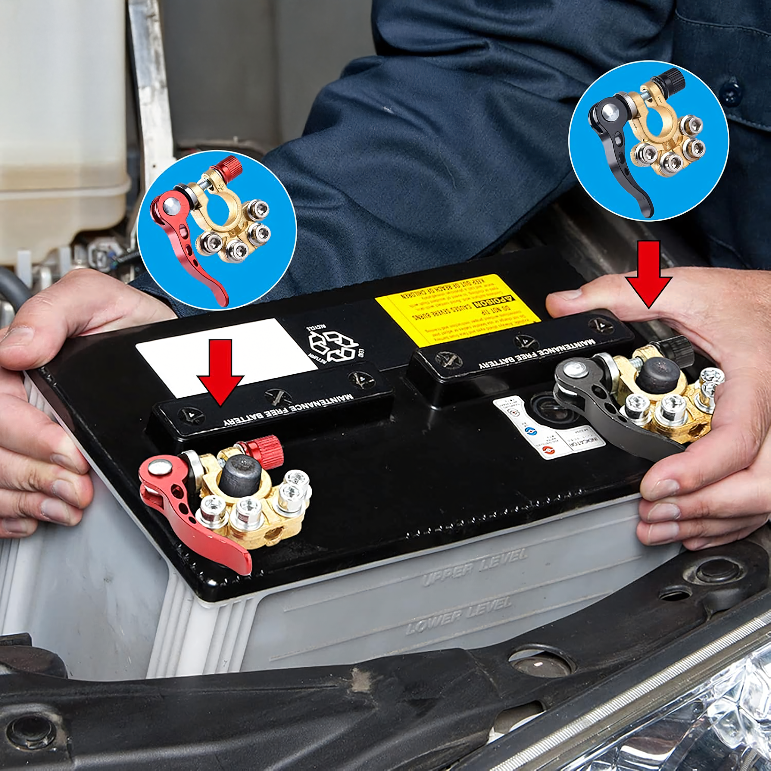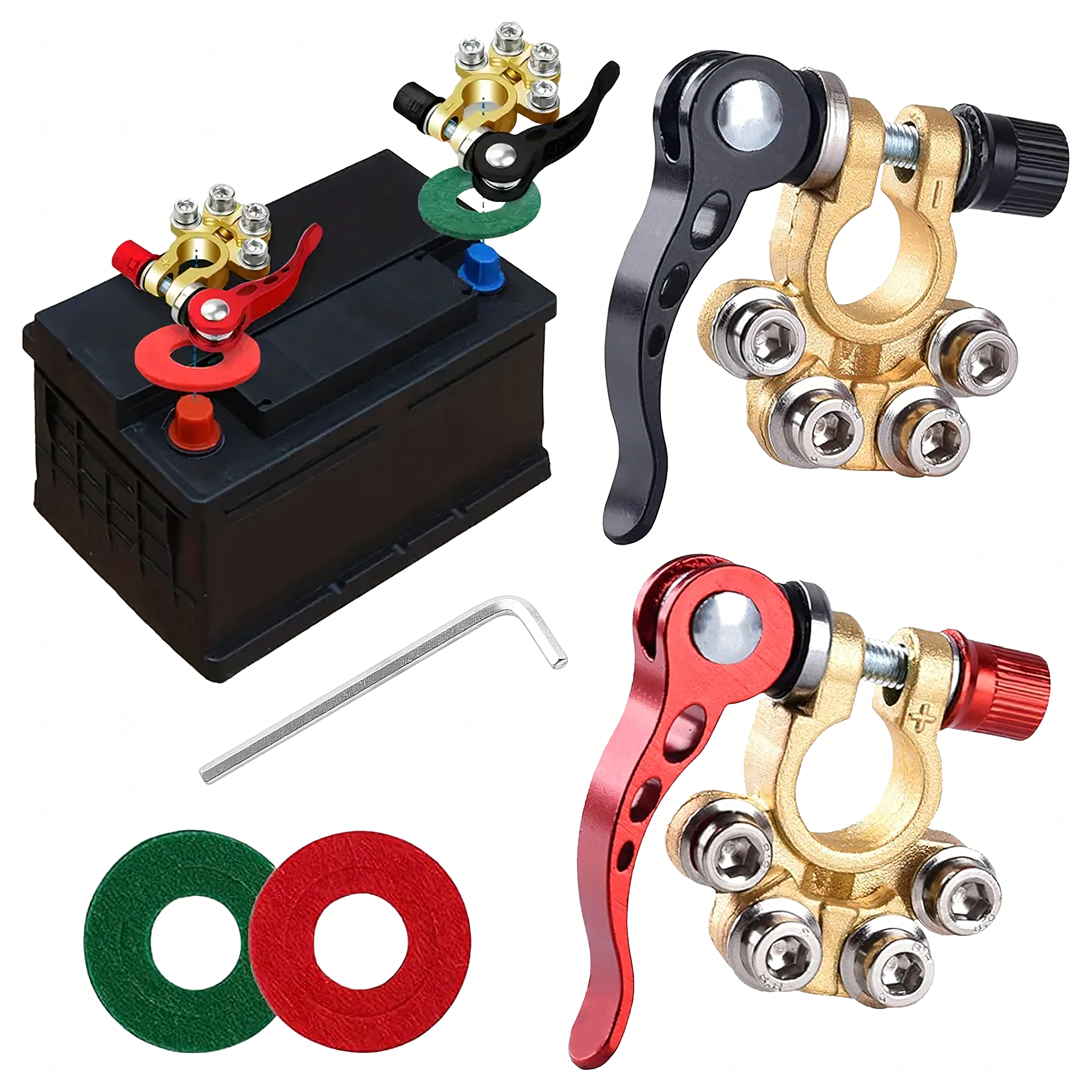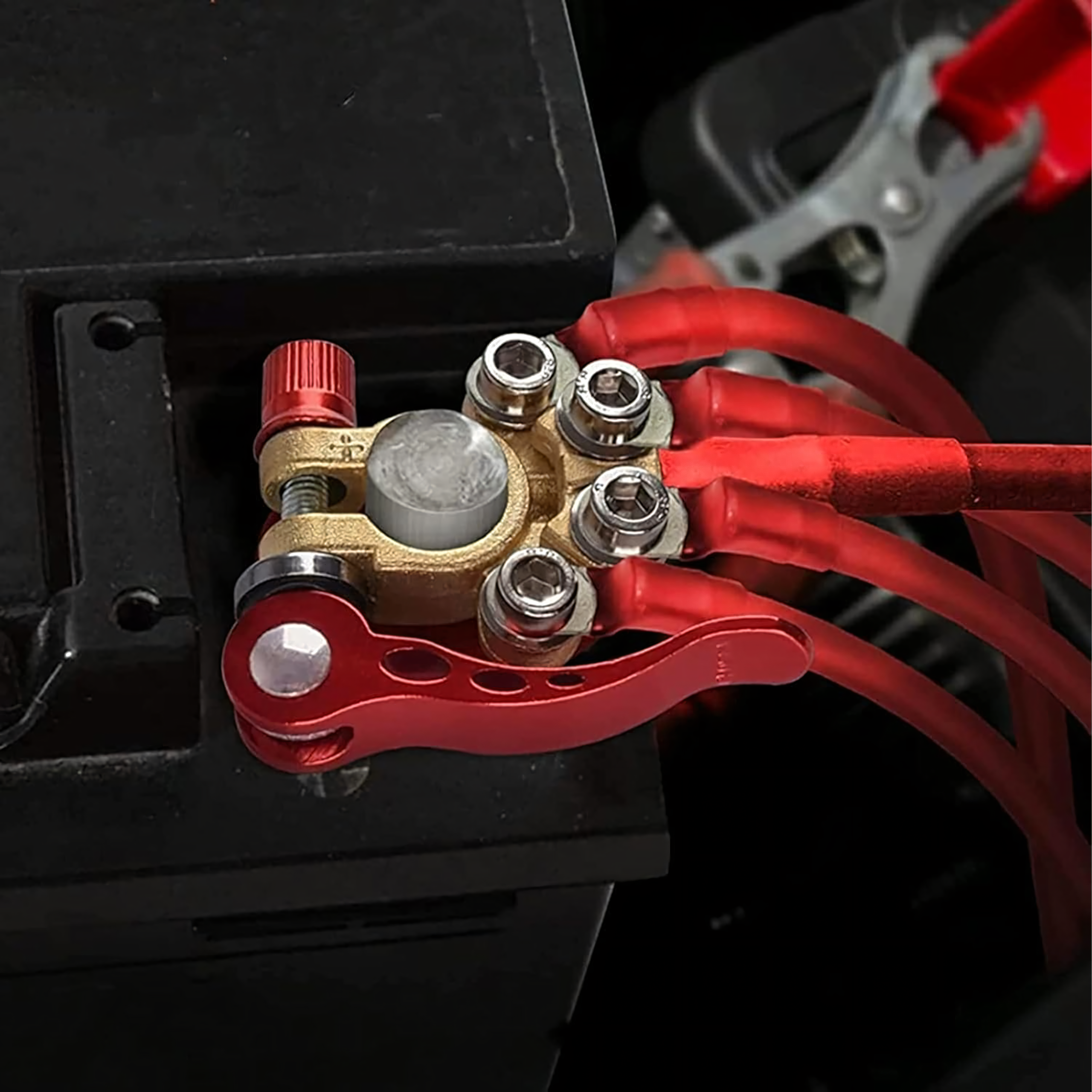 Solidny zestaw 2 klem akumulatorowych (dodatnia i ujemna) o maksymalnym natężeniu 800A. Pasują do większości akumulatorów 6V, 12V i 24V. Wykonane z mosiądzu i stali nierdzewnej, odporne na korozję, zapewniają pewne i trwałe połączenie.