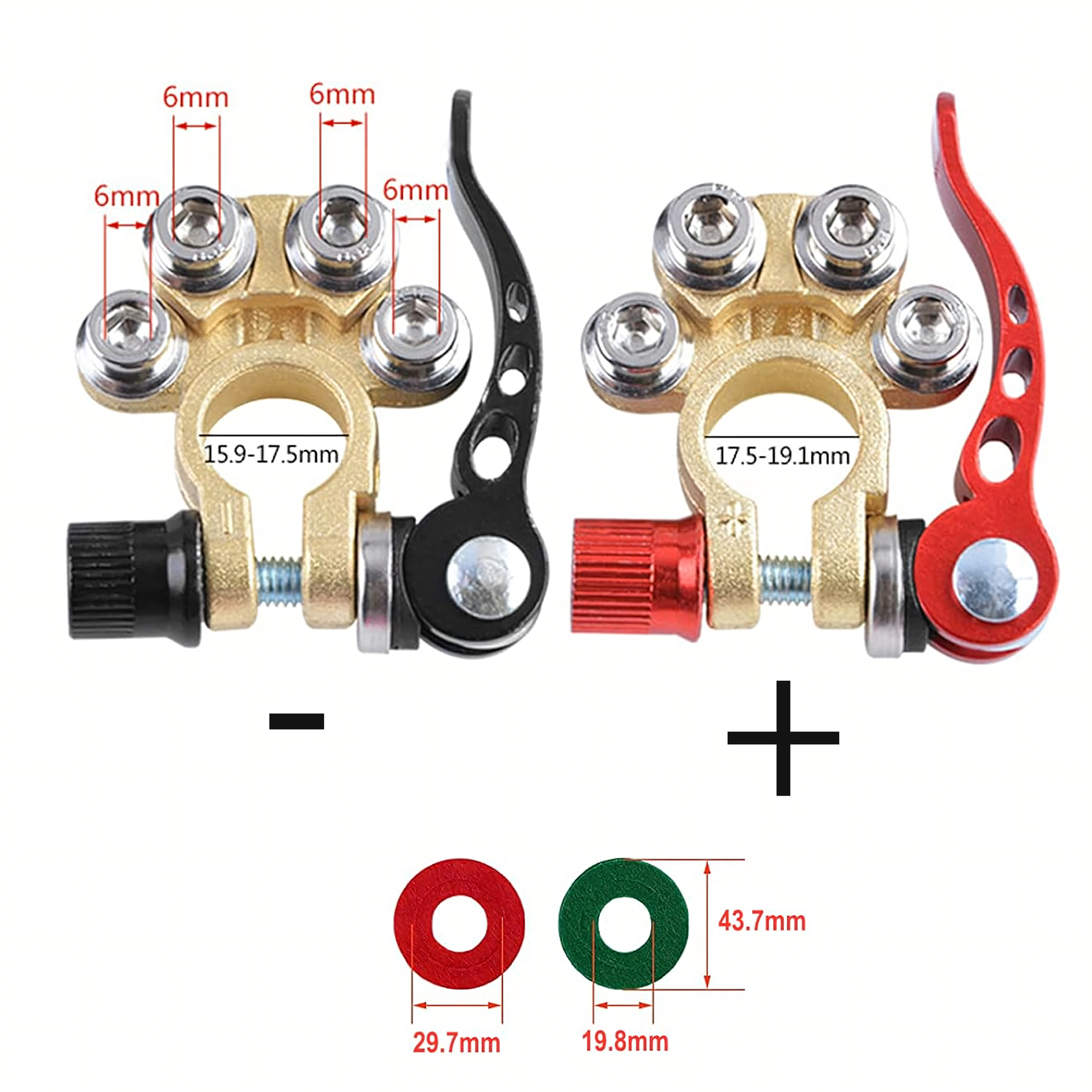 2x Klemy Zaciskowe Złącza Zaciski Akumulatora Dodatnie Ujemne Zestaw 6-24V