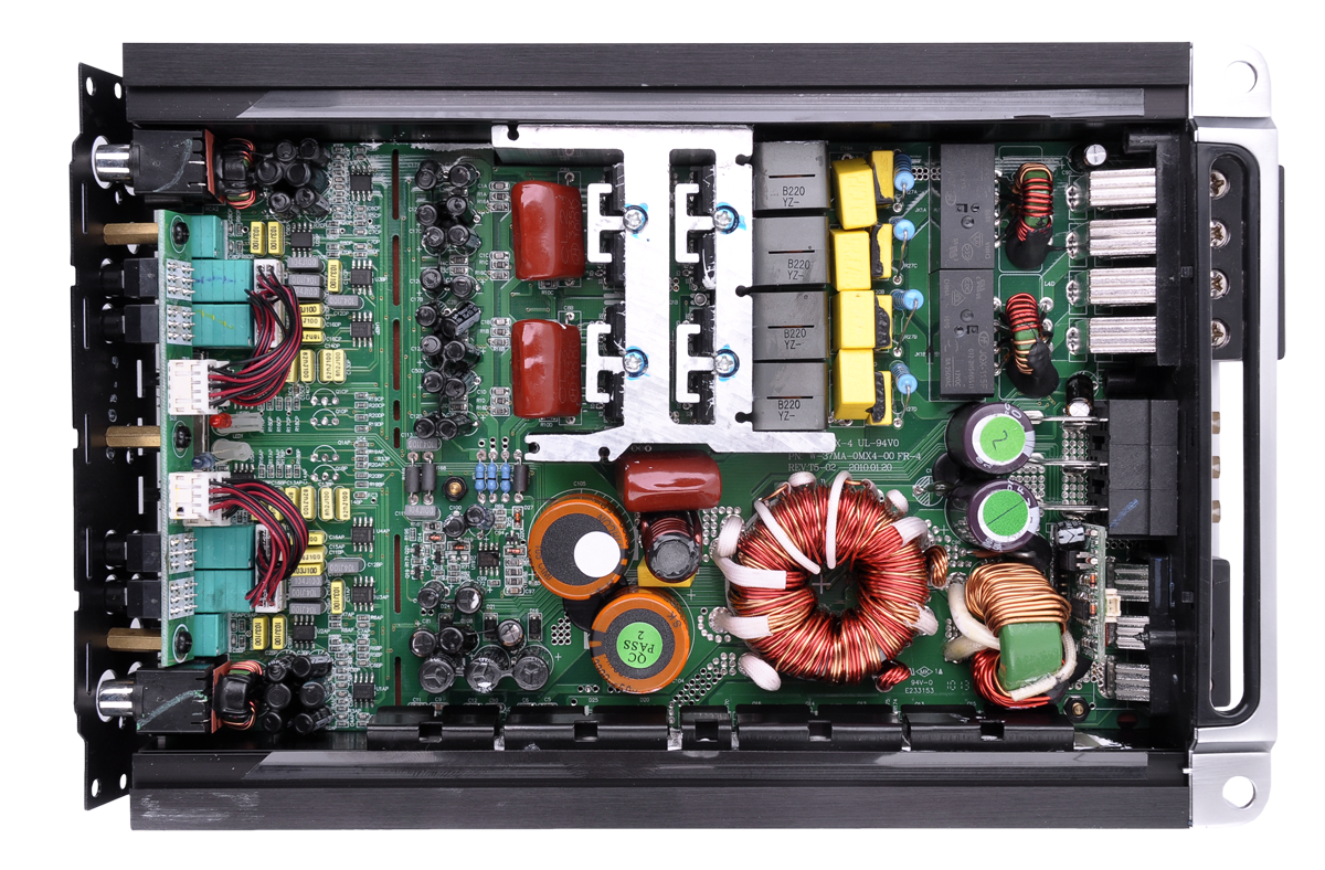 Moc wyjściowa (RMS) @ 14,4V / 4 Ohm (3 kanały): 125 W x 2 + 400 W x 1