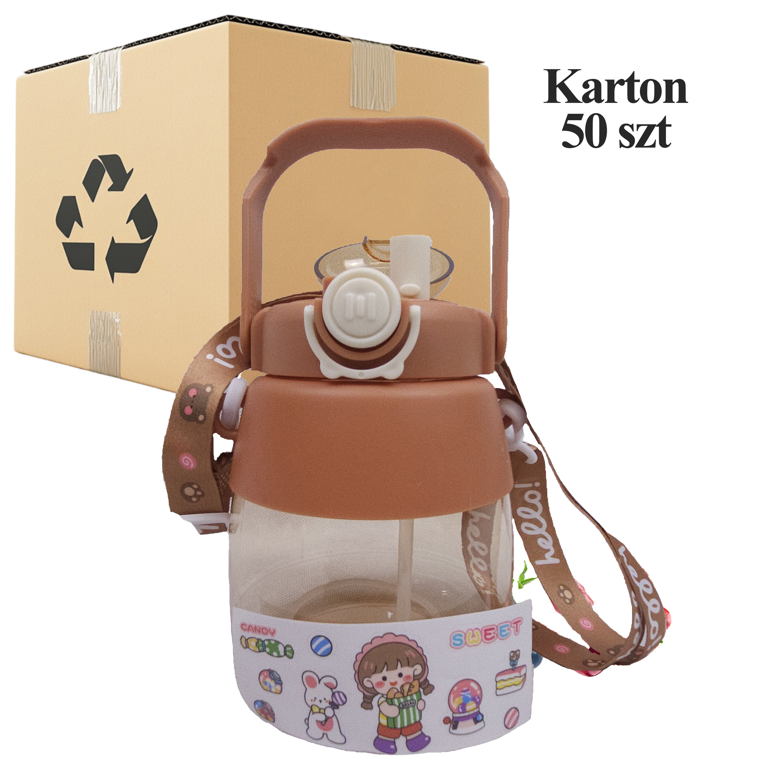 50 x BIDON DO SZKOŁY PRZEDSZKOLA BUTELKA NA WODĘ ZE SŁOMKĄ SMYCZ DLA DZIECI 1L