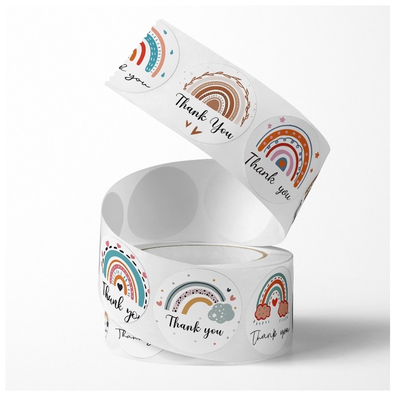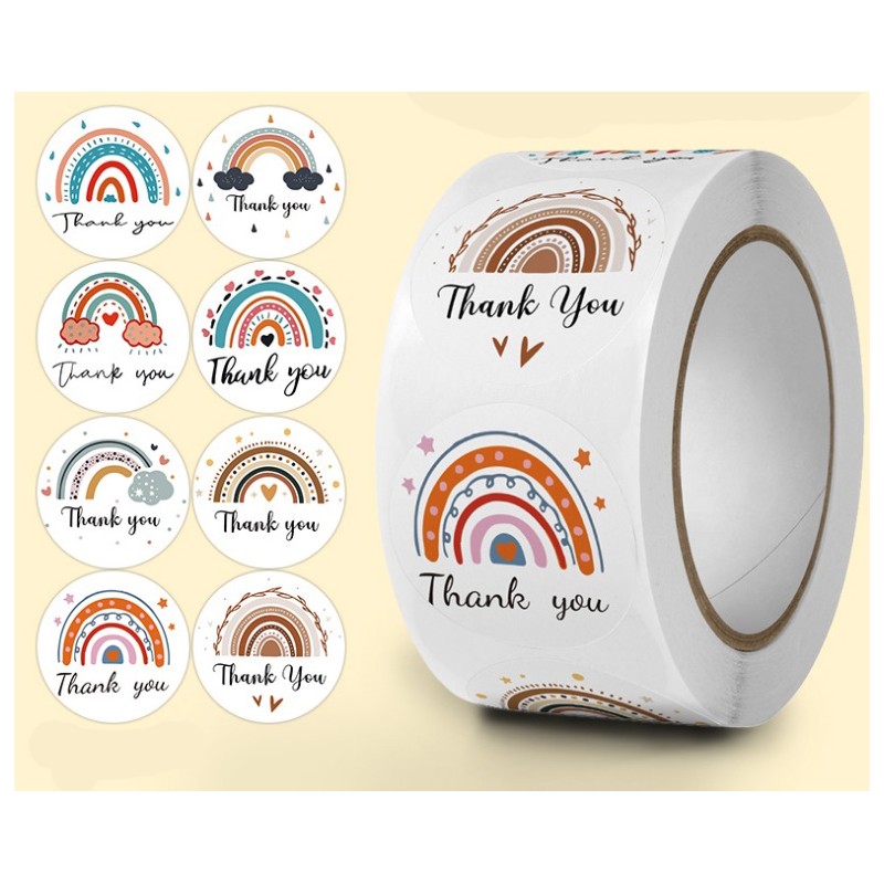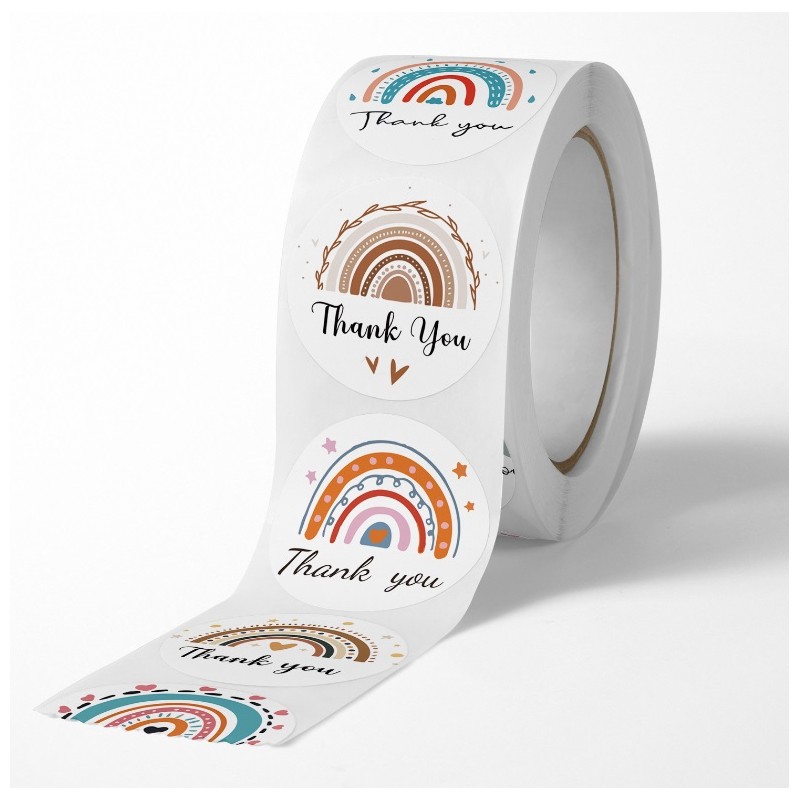 500 sztuk naklejek THANK YOU z tęczą na taśmie średnica 25mm dekoracyjne naklejki samoprzylepne etykiety NNK10