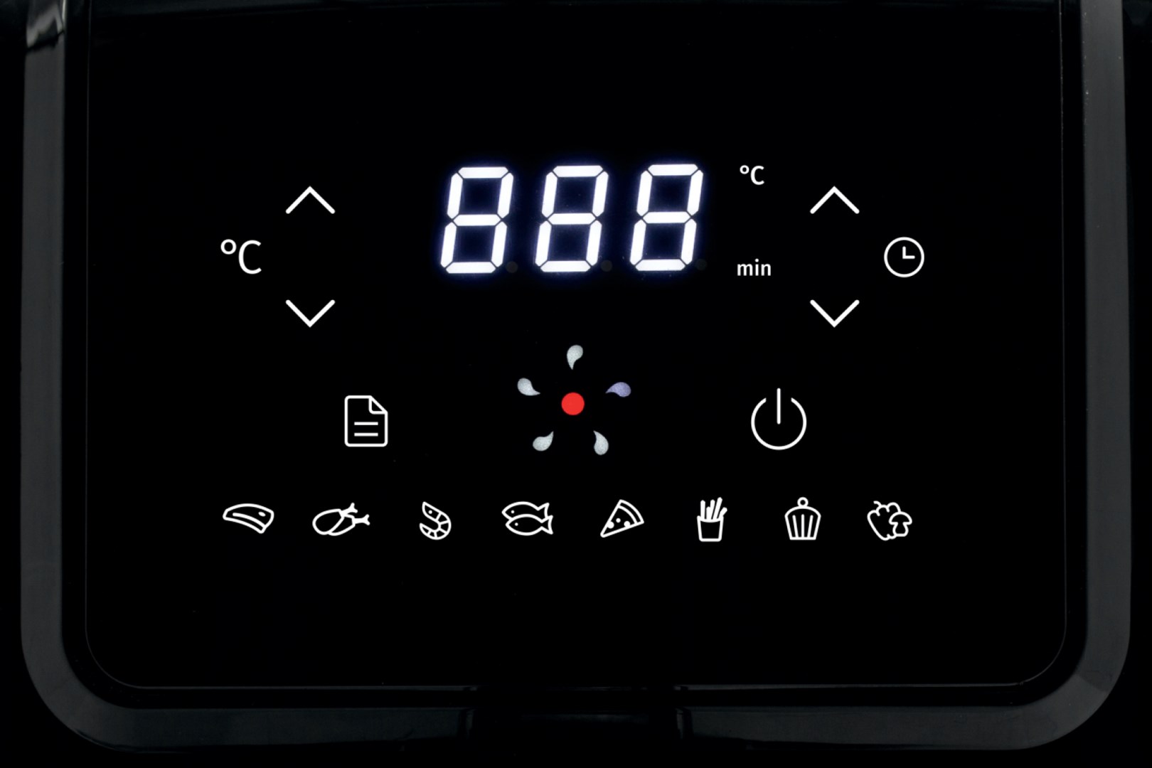 Typ produktu: Frytkownica na gorące powietrze • Kolor: Czarny, Metaliczny.