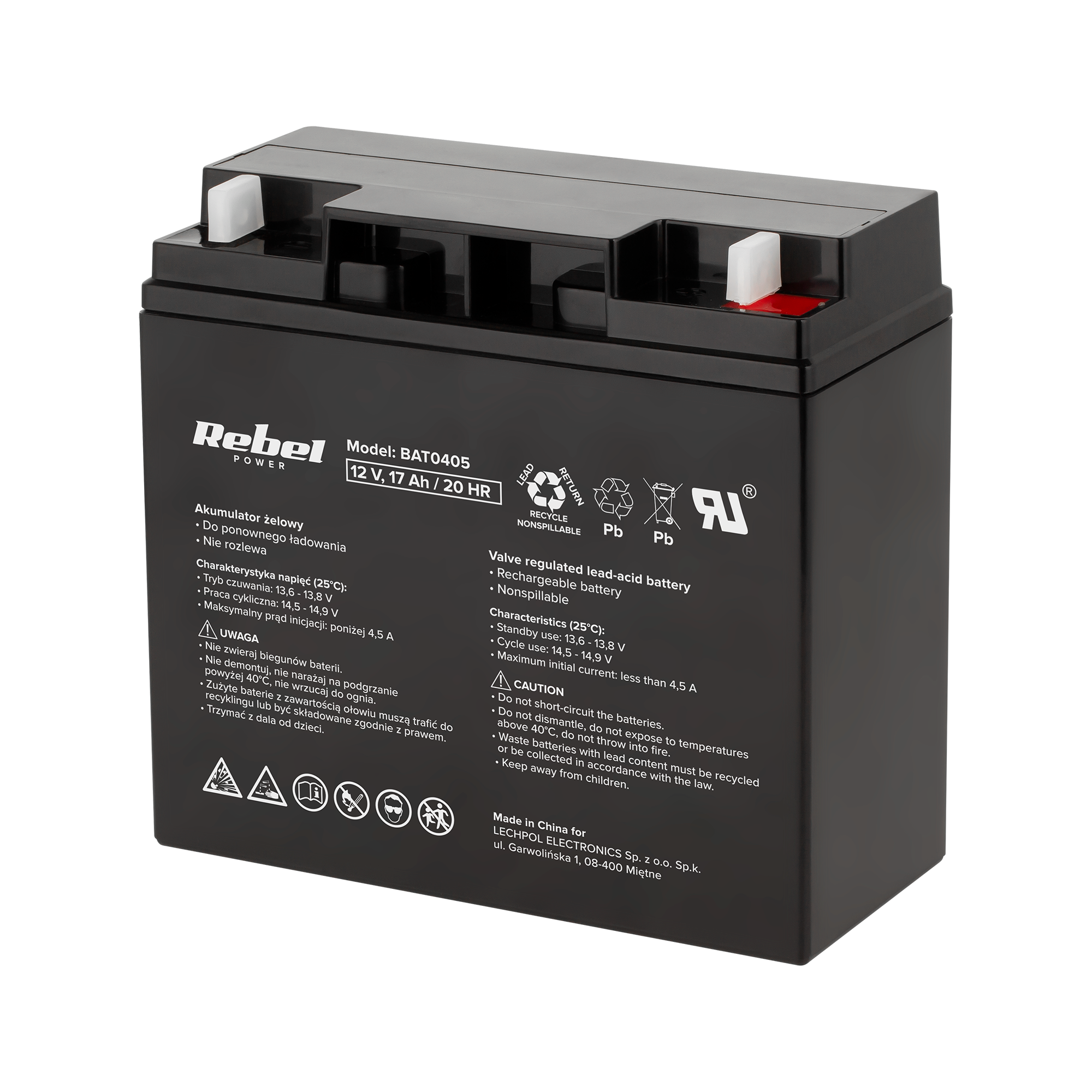 <h2>Akumulator żelowy Rebel Power 12 V / 17 Ah</h2><p>Akumulatory żelowe stały się alternatywą dla klasycznych akumulatorów kwasowo-ołowiowych. W przeciwieństwie do tych drugich, modele żelowe są akumulatorami bezobsługowymi. Oznacza to, że nie wymagają one uzupełniania elektrolitu. To, co przemawia na ich korzyść to szczelna obudowa oraz elektrolit w formie żelu. Daje to gwarancję, że nie będzie on wyciekał, dzięki czemu akumulator może być przetrzymywany w dowolnej pozycji i jest bardziej odporny na wstrząsy.</p>