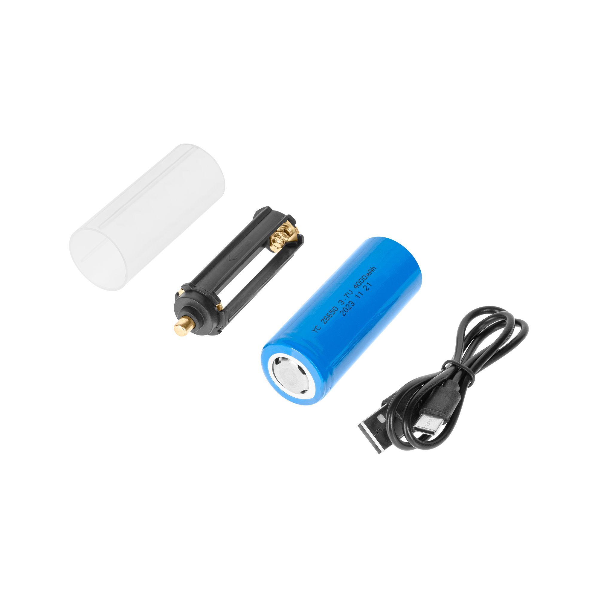 <h2>Wodoodporność i akcesoria</h2><p>Oferuje stopień ochrony IP65, co oznacza odporność na kurz i wodę, umożliwiając użytkowanie w trudnych warunkach pogodowych. W zestawie znajduje się kabel USB-C (45 cm), adapter do akumulatora 18650 oraz adapter na baterie AAA, co zapewnia różne opcje zasilania latarki.</p>