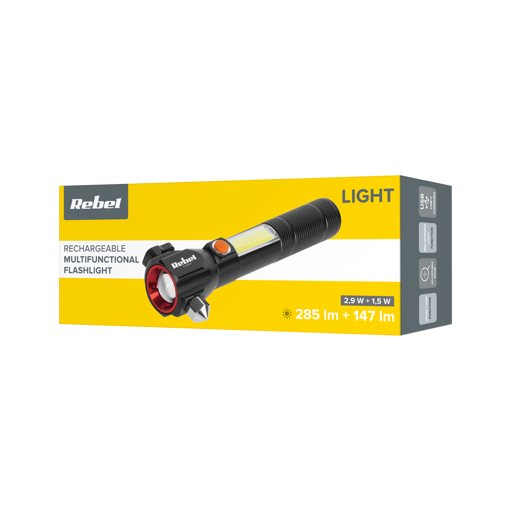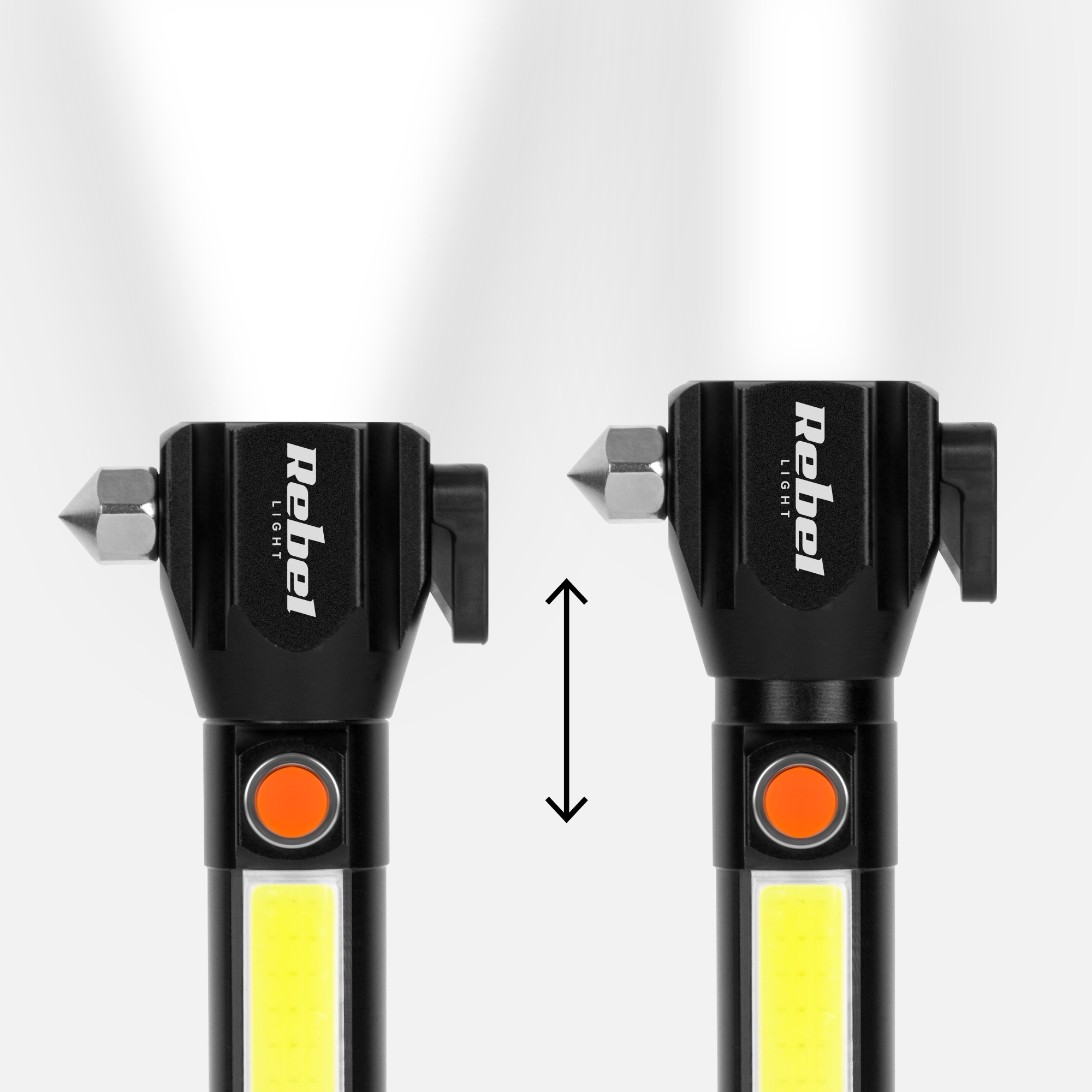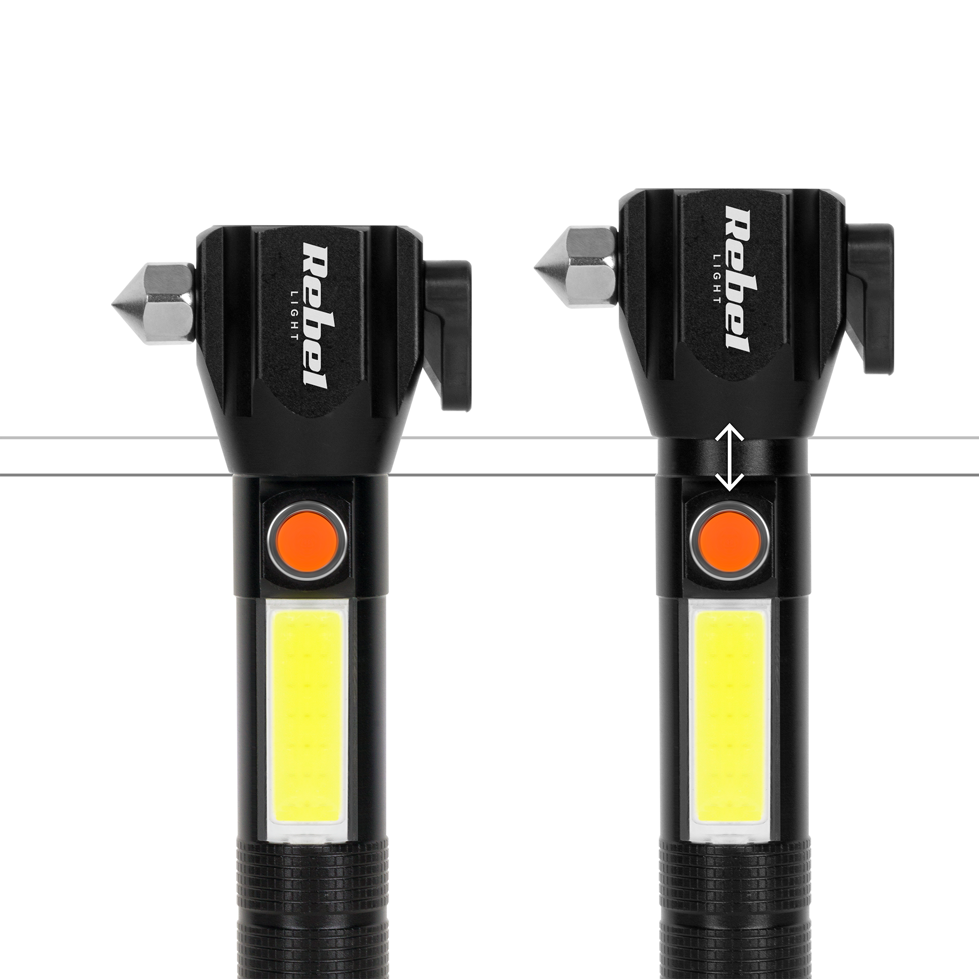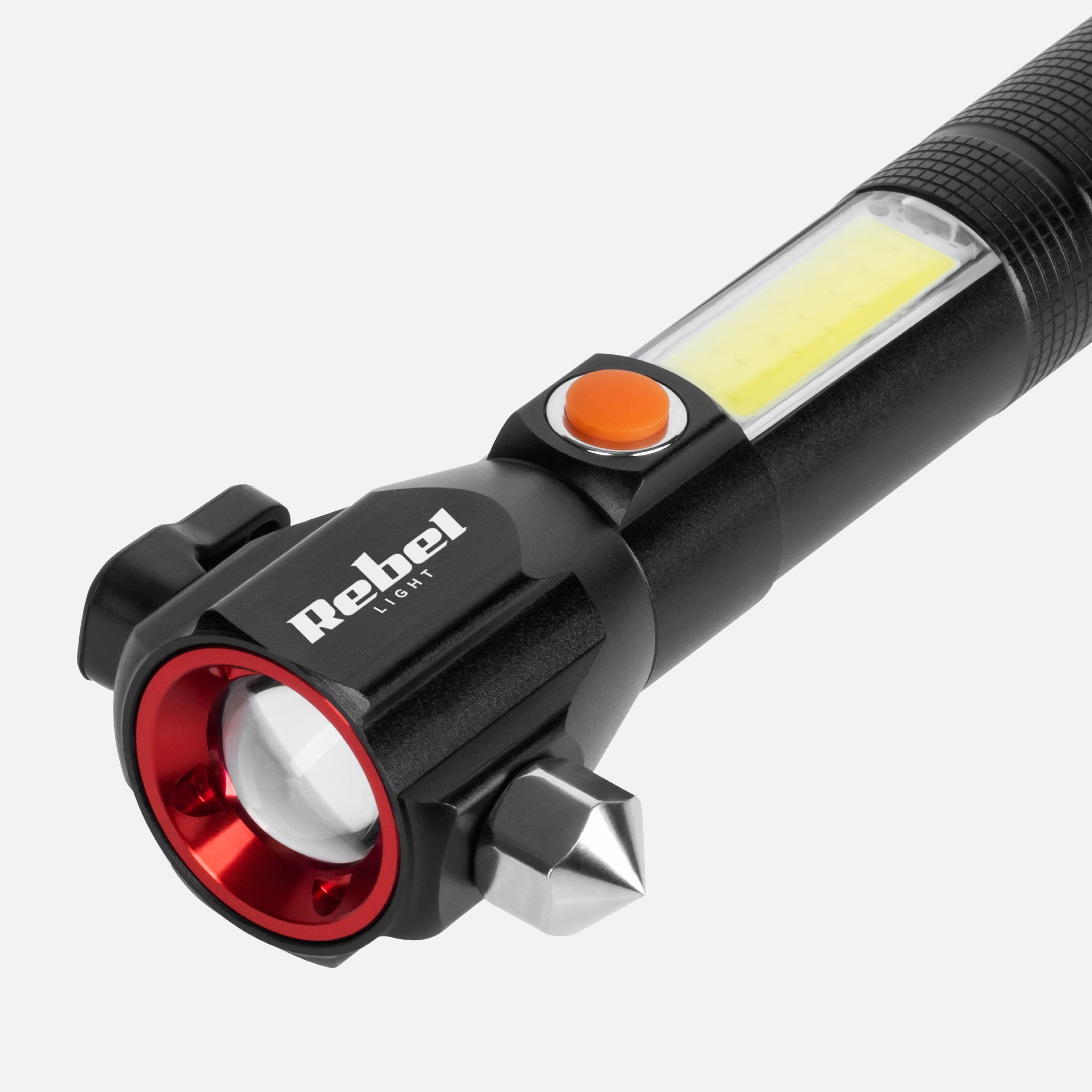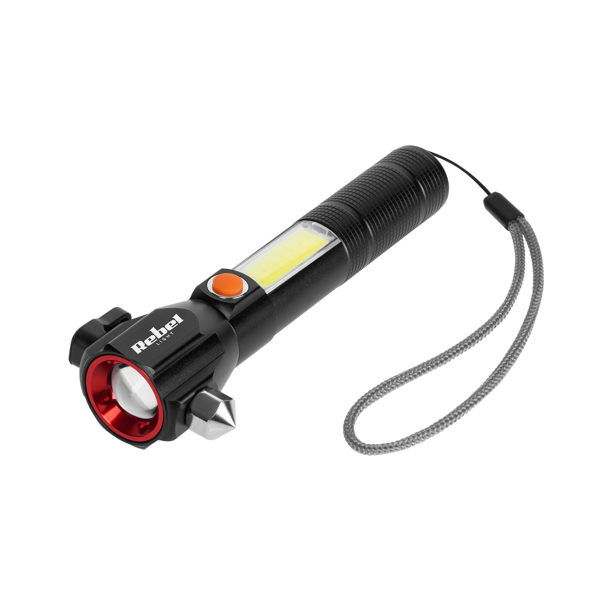 Akumulatorowa latarka wielofunkcyjna Rebel (zoom, nożyk, młotek do szyby).