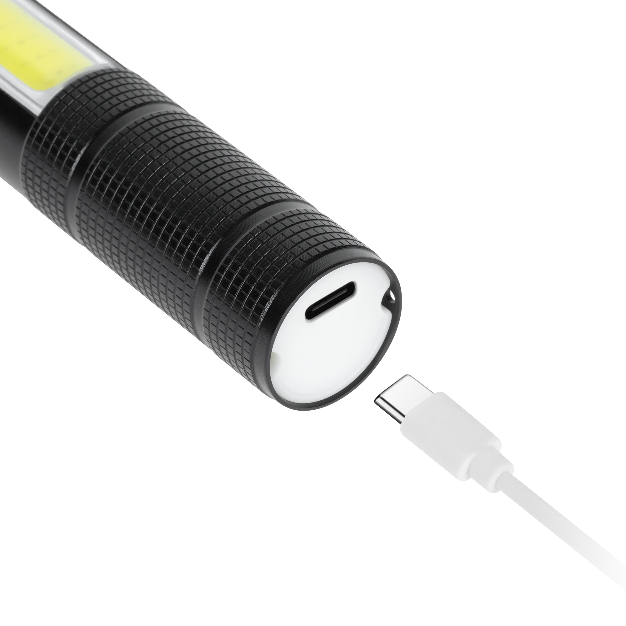 <h2>Dwa źródła światła</h2><p>Komfortowe użytkowanie latarki Rebel zapewniają dwa źródłami światła. Pierwsze z nich LED o mocy 2,9 W generuje wiązkę o zasięgu 200 m i strumieniu 285 lm. Z kolei boczne światło COB o mocy 1,5 W świeci z jasnością 147 lm. Urządzenie może pełnić funkcję lampy roboczej, co jest szczególnie przydatne w przypadku remontów lub prac w garażu lub na zewnątrz.</p>