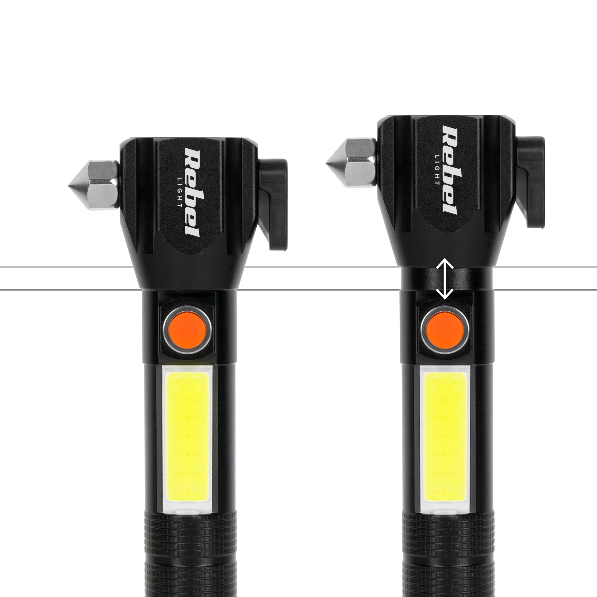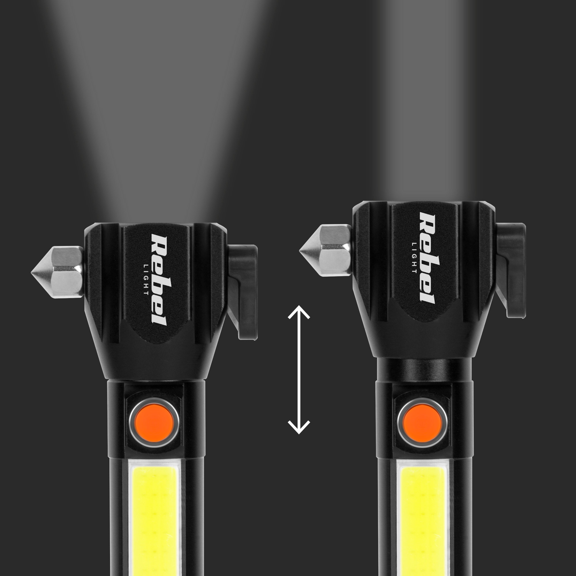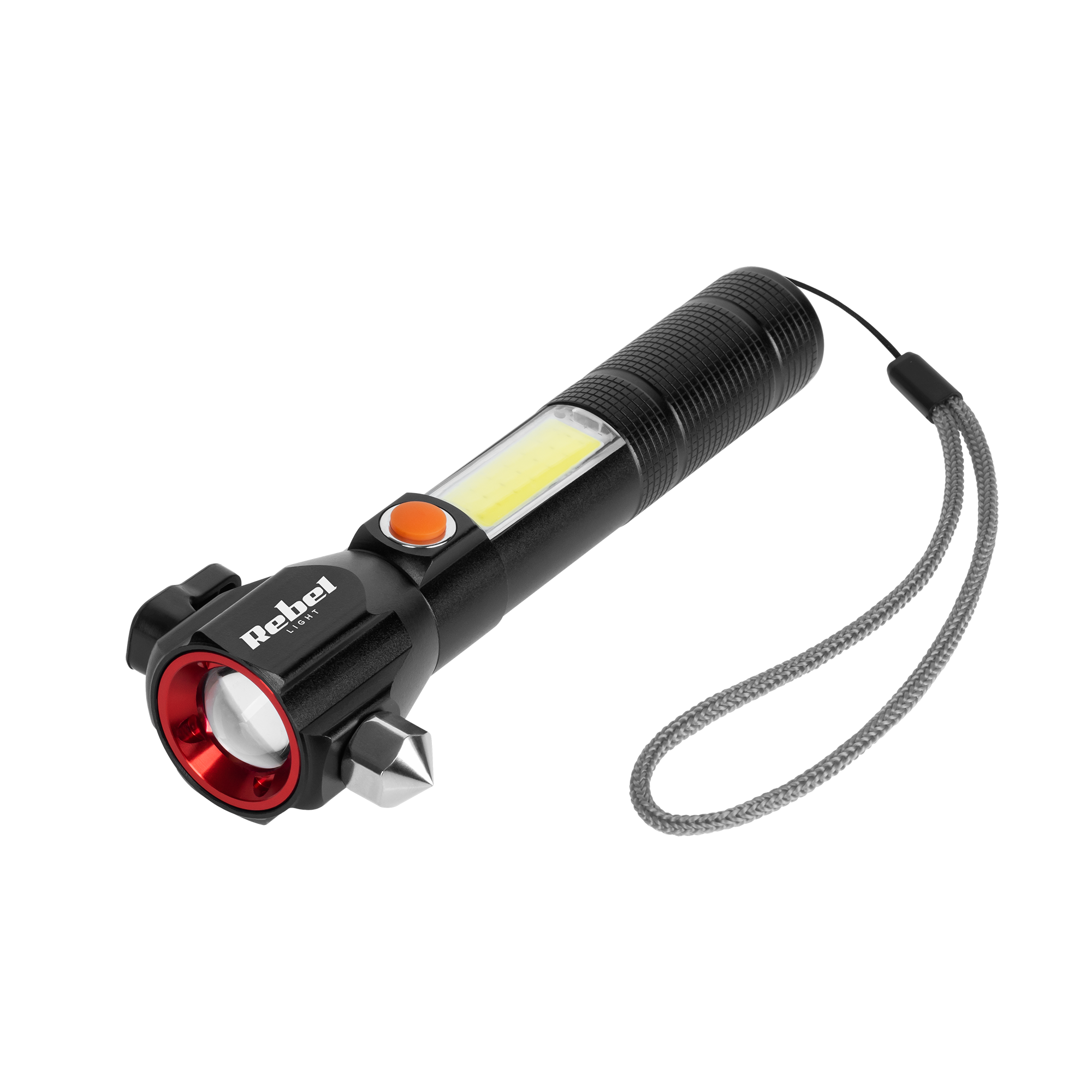 Akumulatorowa latarka wielofunkcyjna REBEL (zoom, nożyk, młotek do szyby)