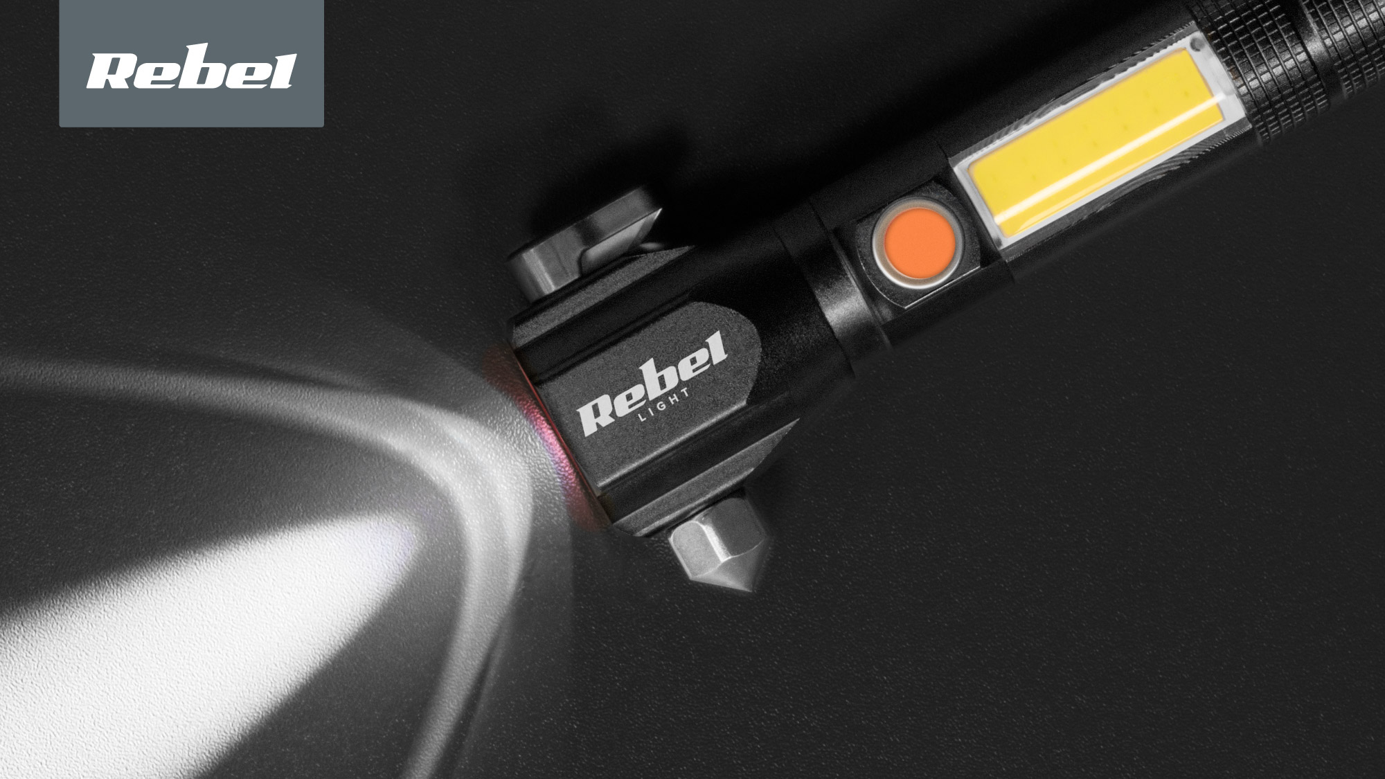 <h2>Latarka multifunkcyjna</h2><p>Jednym z najważniejszych elementów latarki Rebel URZ0941 jest wbudowany<b> młotek do szyb</b>. Dzięki niemu w razie awarii lub wypadku, można łatwo wybić szybę i uwolnić się z pojazdu. Ponadto, produkt <b>posiada nożyk</b>, co jest szczególnie ważne w przypadku nagłych sytuacji. Dopełnieniem wyposażenia jest <b>magnes</b>, który umożliwia łatwe przytwierdzenie latarki do metalowych powierzchni.</p>