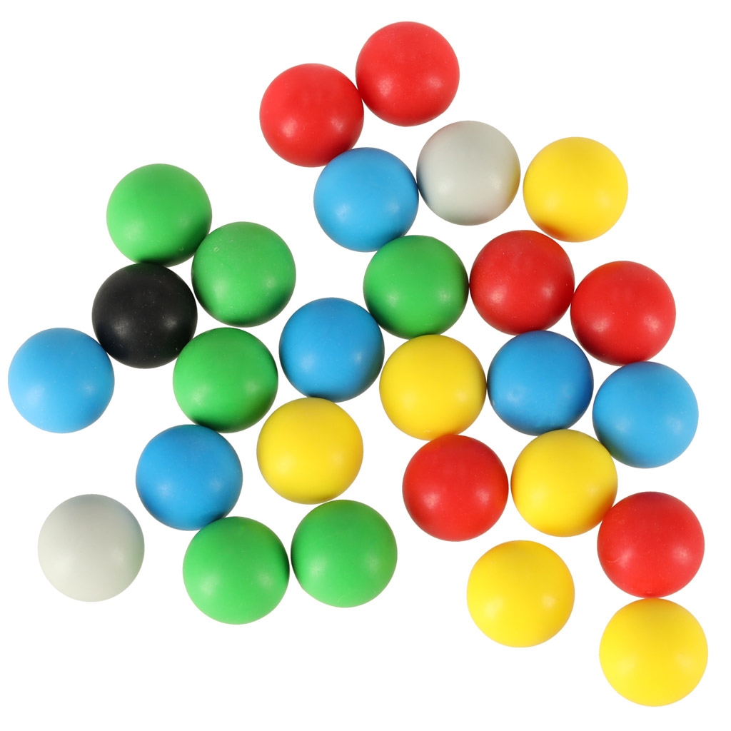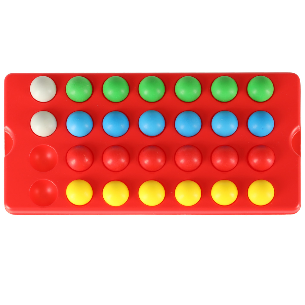 plansza, podstawkę do kul, 6 czerwonych kul, 6 zielonych kul, 6 żółtych kul, 6