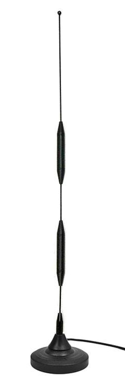 Specyfikacja techniczna: TYP ANTENY: Dwu systemowa antena magnetyczna przeznaczona do modemów i bramek GSM oraz innych zastosowań CZĘSTOTLIWOŚĆ: 850-960 1710-2170 MHZ OPORNOŚĆ: Nom. 50 Ohm POLARYZACJA: LINIOWA/PIONOWA ZYSK: 11 dBi VSWR: <1.5 MOC MAKS.: 10 Watt WYMIARY: Podstawa magnetyczna – średnica: 68mm wys.: 460mm, Bat (promiennik): 410mm KOLOR: Czarny WAGA: 232 g MONTAŻ: Na dachach pojazdów, płaskich powierzchniach urządzeń MATERIAŁ: ABS i PCB KABEL: Nisko stratny RG 174U Długość: 5m