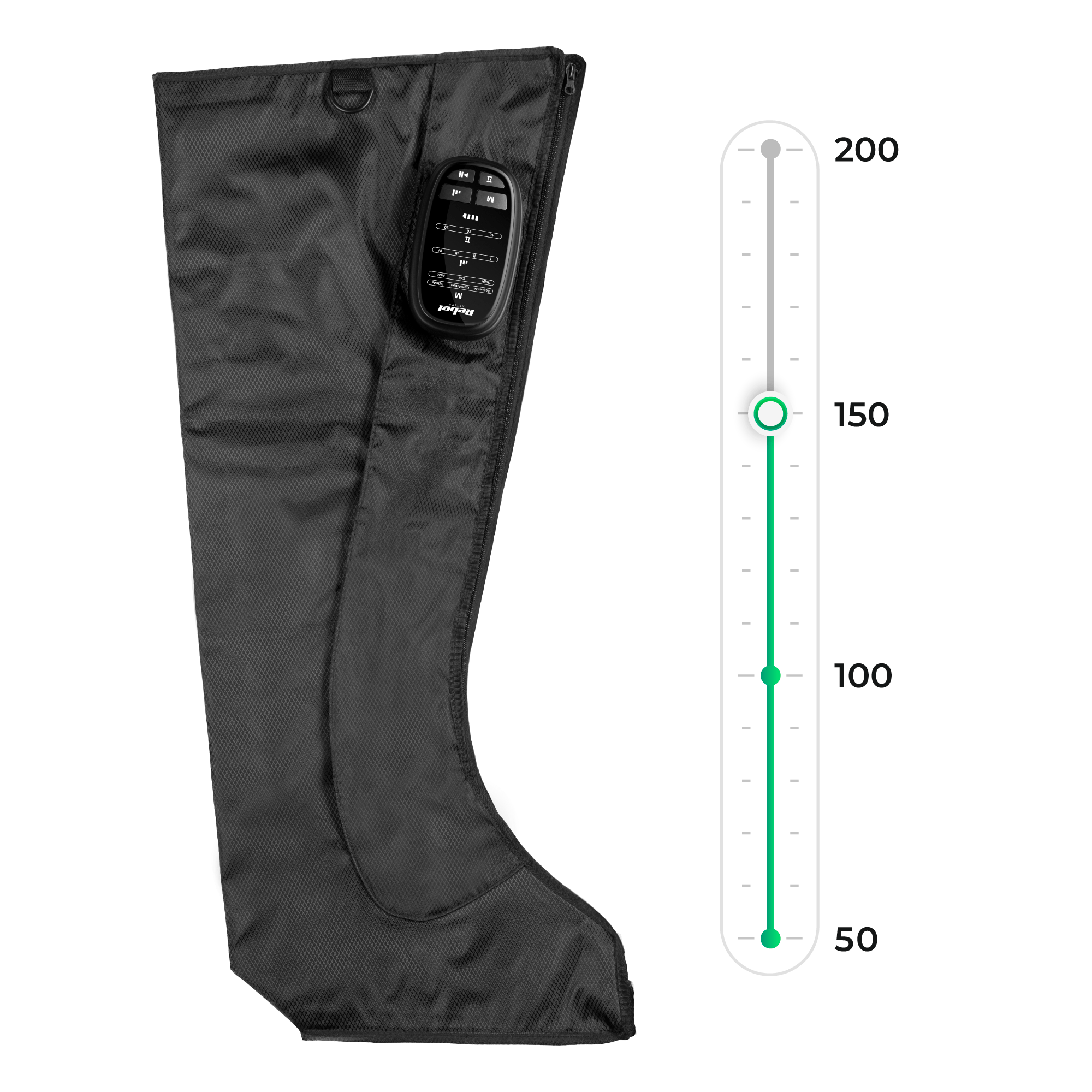 <h2>Regulacja ciśnienia dla pełnego komfortu</h2><p>Dzięki czterem poziomom regulacji ciśnienia (50, 100, 150 i 200 mmHg), możesz idealnie dostosować intensywność masażu. Urządzenie zapewnia precyzyjną i równomierną kompresję dzięki 5-komorowej konstrukcji, co zwiększa efektywność terapii.</p><p></p>