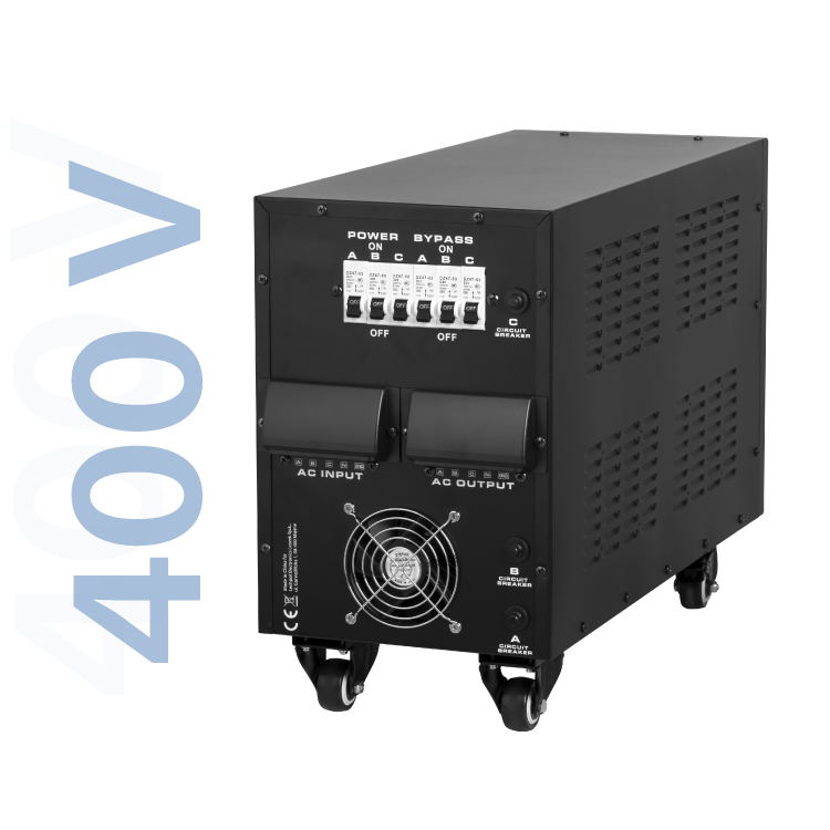 <h2>Tryb trójfazowy</h2><p>W trybie trójfazowym istotne jest zachowanie równowagi między fazami. Stabilizator monitoruje i kontroluje napięcie na każdej fazie, aby zapewnić zgodność między nimi – wyrówna zbyt wysokie lub zbyt niskie napięcie wejściowe i poda na wyjście napięcie po stabilizacji. Jeżeli w tym trybie któraś z faz nie zadziała poprawnie lub jest nie podłączona, to w urządzenie uruchomi zabezpieczenie i nie poda napięcia na wyjście, informując o tym poprzez kontrolkę „BŁĄD FAZY”.</p>