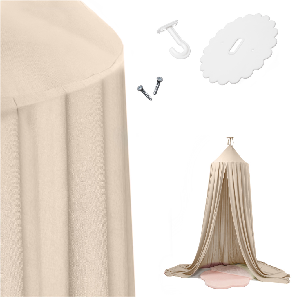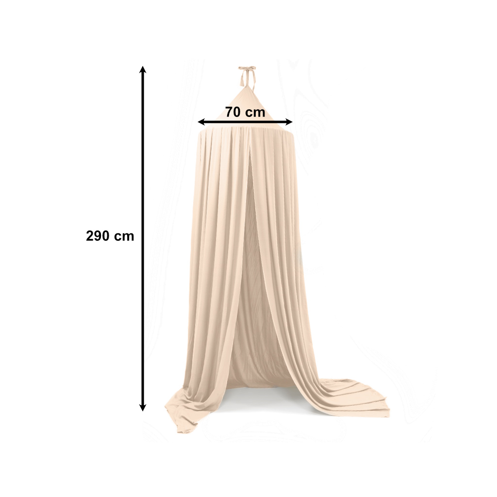 Beżowy baldachim to piękna ozdoba pokoju. Delikatny
