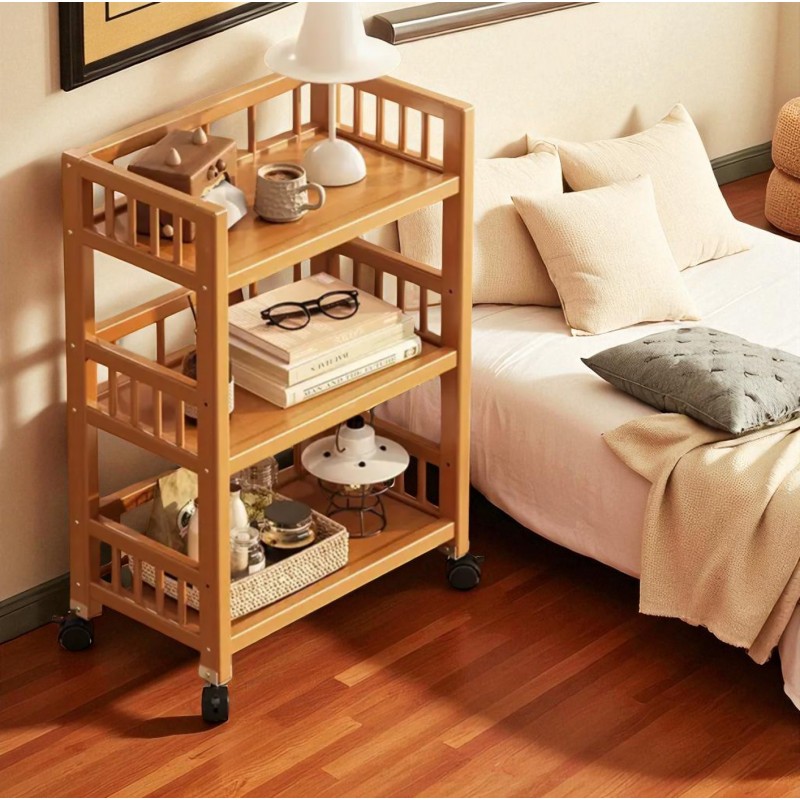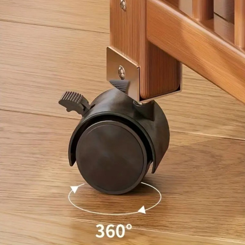 bambusowy regał na kółkach, dzięki któremu łatwo uporządkujesz swoje rzeczy.