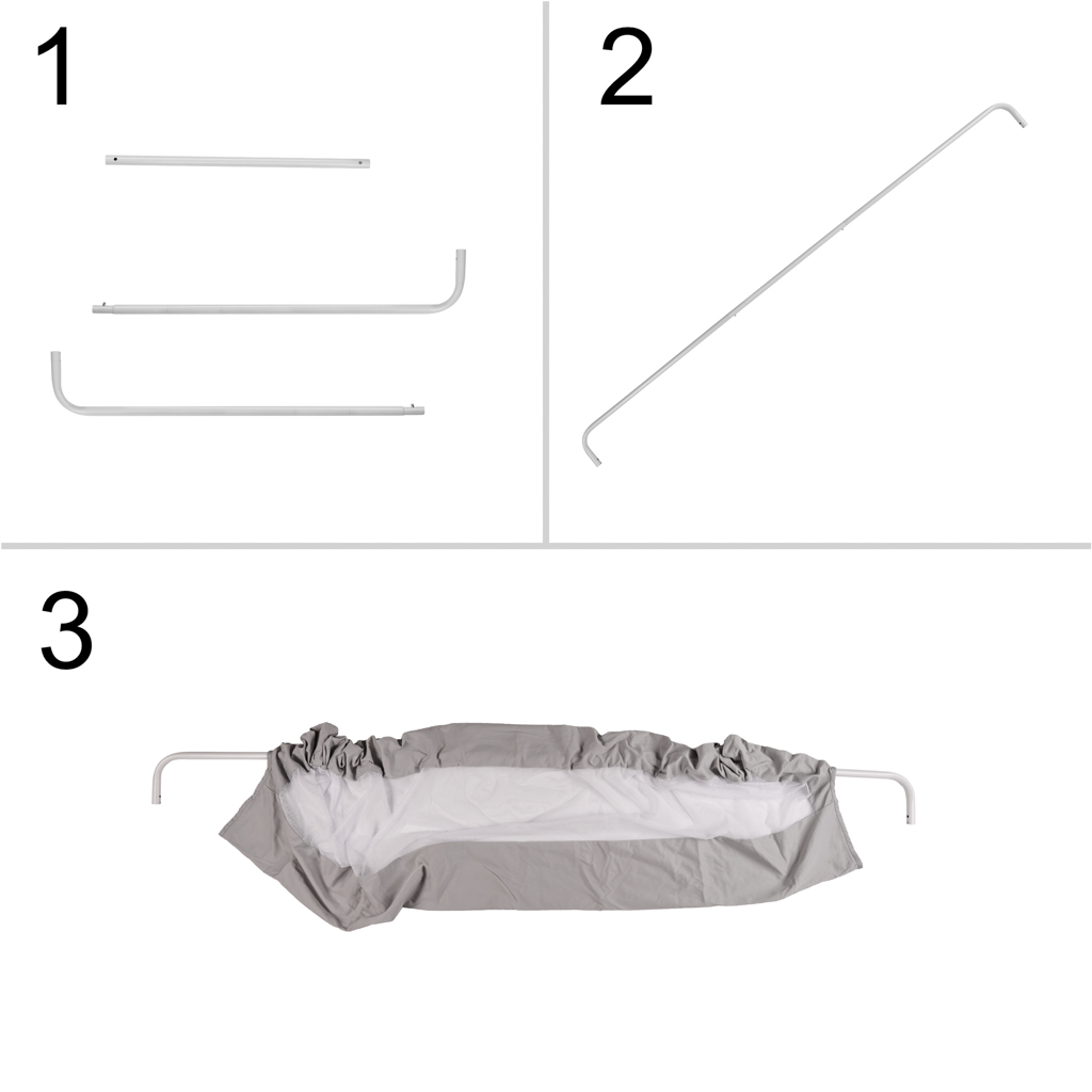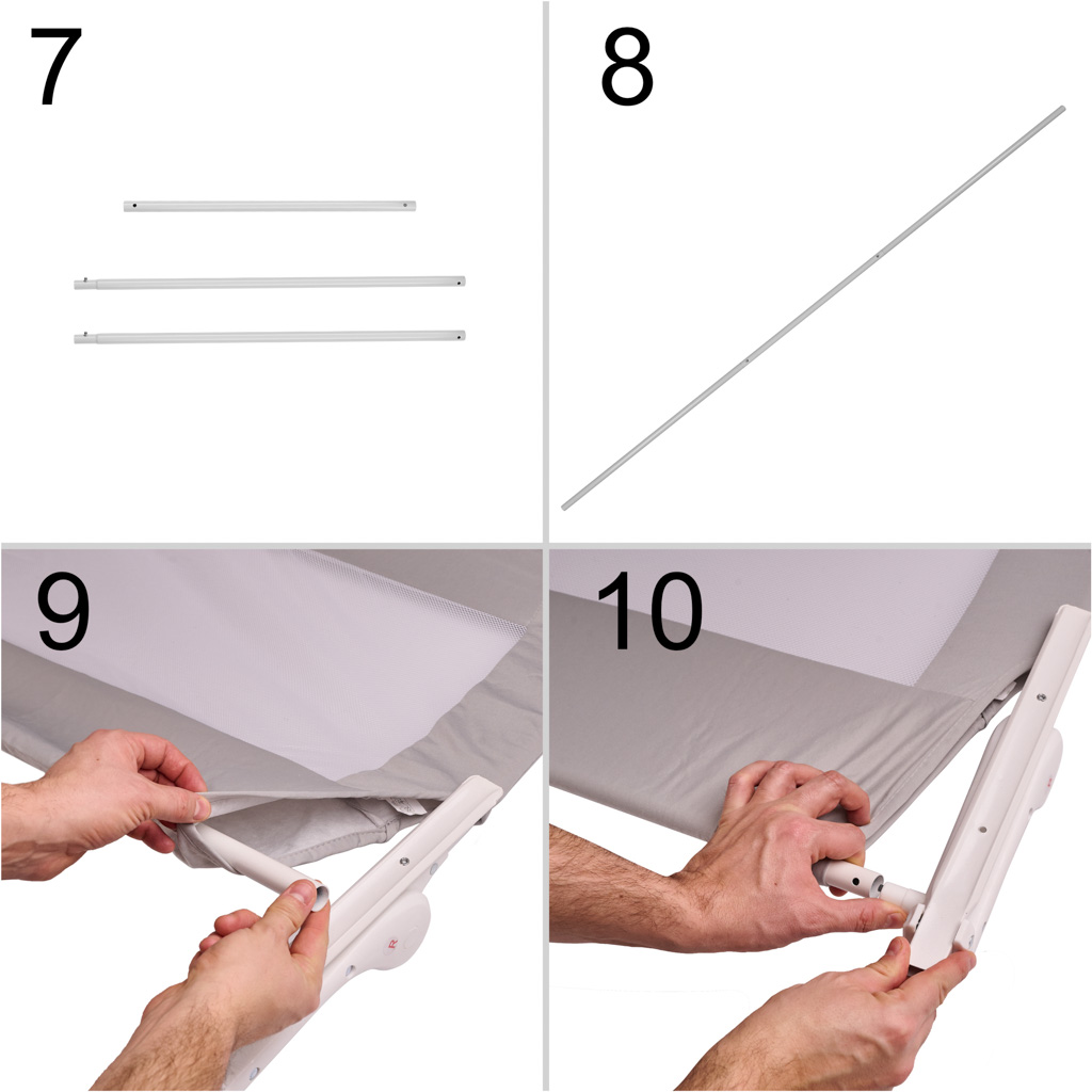 wystarczy złożyć ramę, wsunąć ją w materiałowe obszycie siatki, a następnie