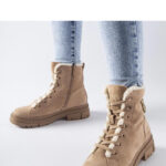 Beżowe botki ocieplane z eko-zamszu Pompei – Solea