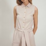 Beżowy kombinezon bez rękawów KM22 Beige – Nife