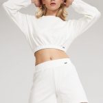 Bluza typu crop z długim rękawem. Rękawy i dół bluzy wykończone szeroką gumą. Półokrągły dekolt.