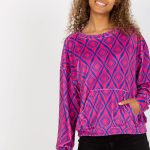 Bluza damska z długim rękawem, na przodzie kieszonka typu kangurek. Bluza wykonana z materiału w ciekawy wzór.