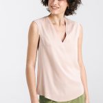 Bluzka bez rękawów z dekoltem V B161 Beige – Nife