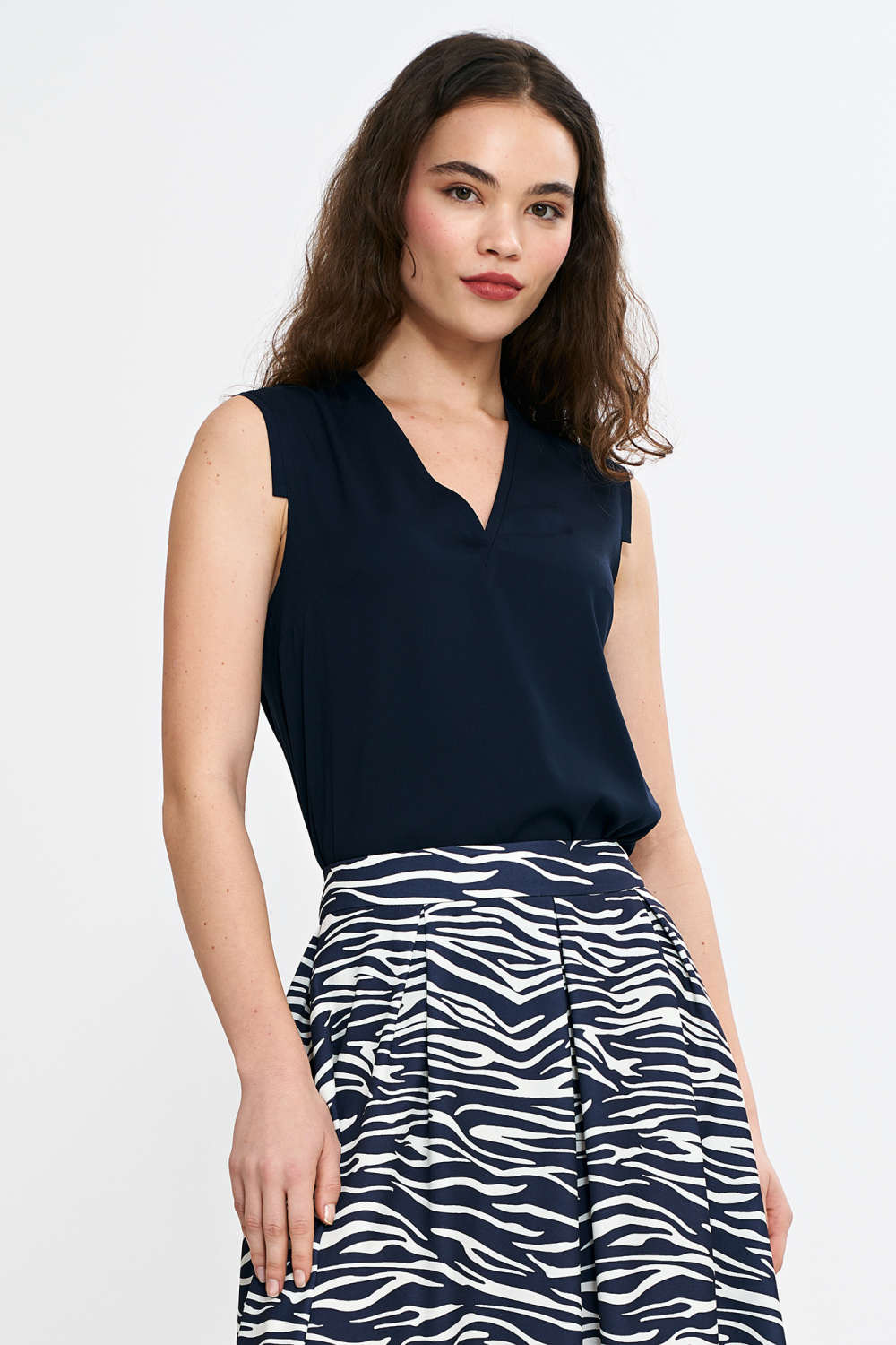 Bluzka bez rękawów z dekoltem V B191 Navy – Nife
