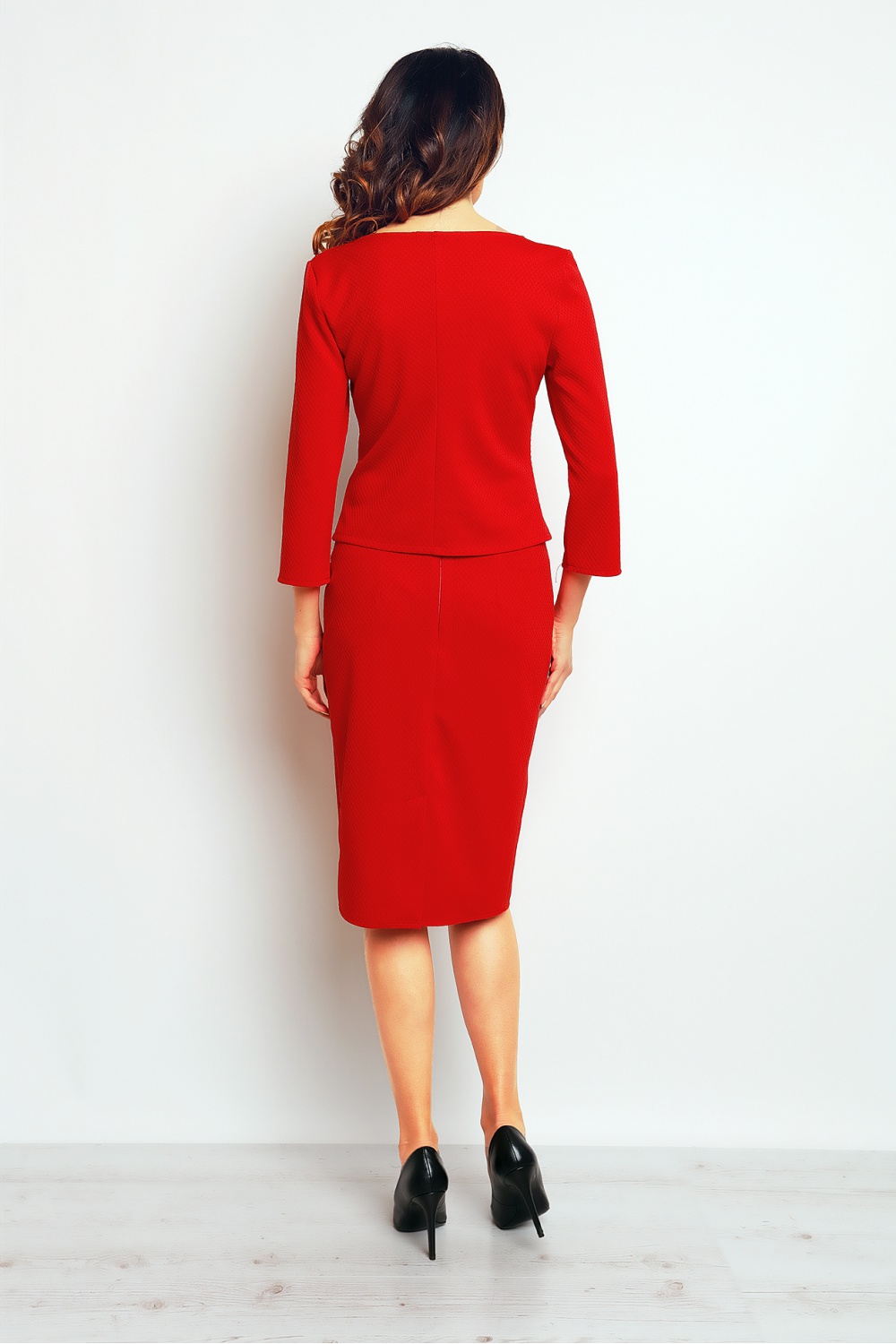 Efektowna, niezwykle kobieca bluzka z rękawami 3/4. Dekolt subtelnie odsłania szyję, lekko zwężana w talii. Z przodu ozdobiona Wysokiej jakości materiał o ciekawej strukturze zapewnia komfort noszenia. W połączeniu z ołówkową spódnicą stworzy elegancką stylizację, idealną do pracy lub na oficjalne spotkania. Ze spodniami rurkami natomiast nabierze nieco bardziej codziennego charakteru.