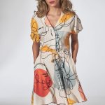 Luźna bluzka w kwiatowe wzory z długim rękawem. Dekolt na stójce, rękaw delikatnie marszczony , dwie falbanki w pasie . Model świetnie uszyty , pięknie komponuje się ze spodniami czy spódnicą , typ must have.