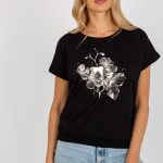 Bluzka o dopasowanym kroju z prążkowanego materiału. Bluzka z długim transparentnym rękawem oraz dekoltem w serek.