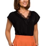 Gładka bluzka bez rękawów to podstawa nie tylko biurowego stroju. Idealna jako dodatek do żakietu, czy kardiganu, dzięki modnemu wykończeniu z koronki może ożywić niejedną stylizację.