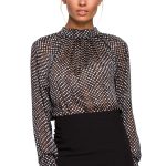 Elegancka bluzka uszyta z szyfonu z widocznym nieregularnym prążkiem i nadrukiem w kropki. Posiada stójkę oraz wiązanie z tyłu, które możesz pozostawić luźno lub tworzyć finezyjne kokardy. Załóż do niej klasyczne spodnie lub spódnicę i olśniewająca stylizacja gotowa!