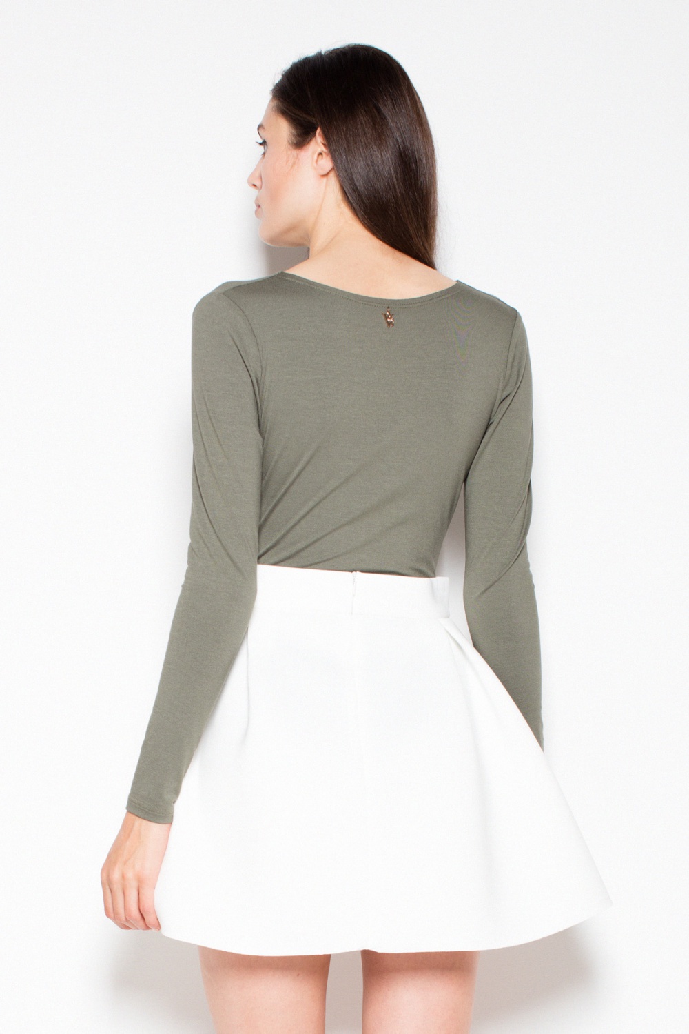 Dopasowane body z długim rękawem z efektywnym lejącym się dekoltem. Model idealnie pasujący do obcisłych, klasycznych, jeansów.