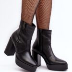 Klasyczne botki damskie wykonane z eko zamszu. Osadzone na obcasie w formie słupka. Noski zaokrąglone. Model ten wyróżnia się przeszyciami na cholewce oraz małym detalem. Wnętrze ocieplane miękkim kocem obuwniczym, idealne na chłodniejsze dni.