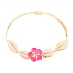 Bransoletka 2w1 na stopę i rękę, na sznurku, MUSZELKI i KWIAT HAWAJSKI B542ZO