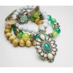 Koralikowa ozdoba na rękę z przywieszkami.Bransoletka na przezroczystej silikonowej jubilerskiej gumce, składająca się z jednokolorowych koralików. Wykonana jest ze stopów metali nieszlachetnych.Nie są odporne na wodę.Nie zawiera niklu ani chromu.Wymiary:średnica bransoletki 6 cm (bez rozciagania)średnice koralików 0,8 cm