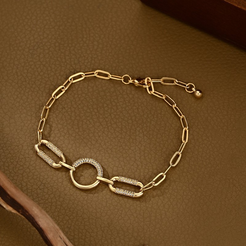 Bransoletka na rękę stal chirurgiczna pozłacana 14k złotem, cyrkonie – BST1558