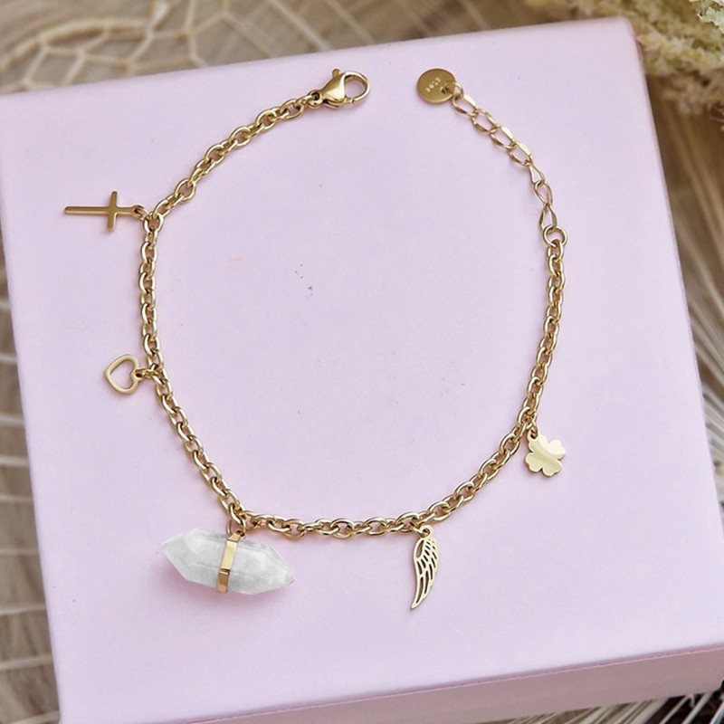 Bransoletka na rękę stal chirurgiczna pozłacana 14k złotem kryształ górski BST1407B