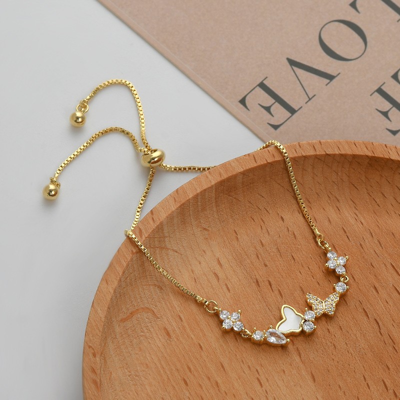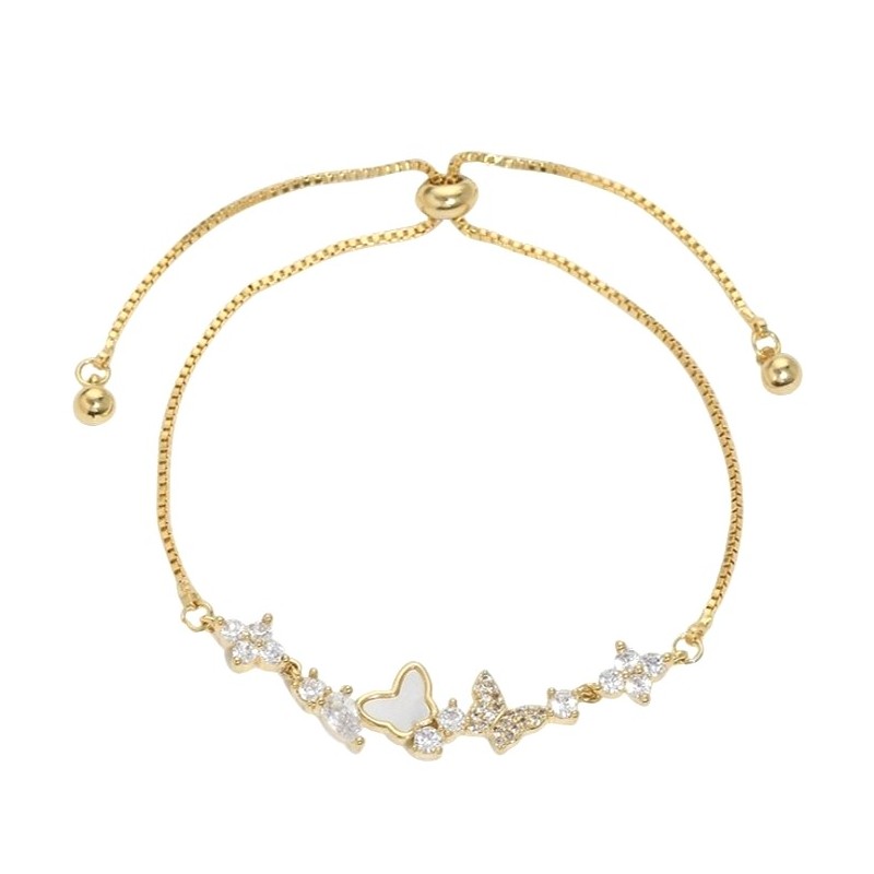 Bransoletka na rękę stal chirurgiczna pozłacana 14k złotem, MOTYLKI cyrkonie BST1530