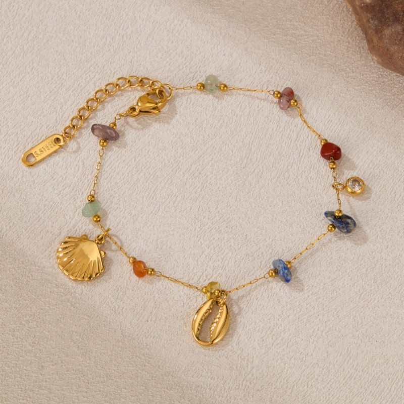 Bransoletka na rękę stal chirurgiczna pozłacana 14k złotem, MUSZELKI kamienie BST1514