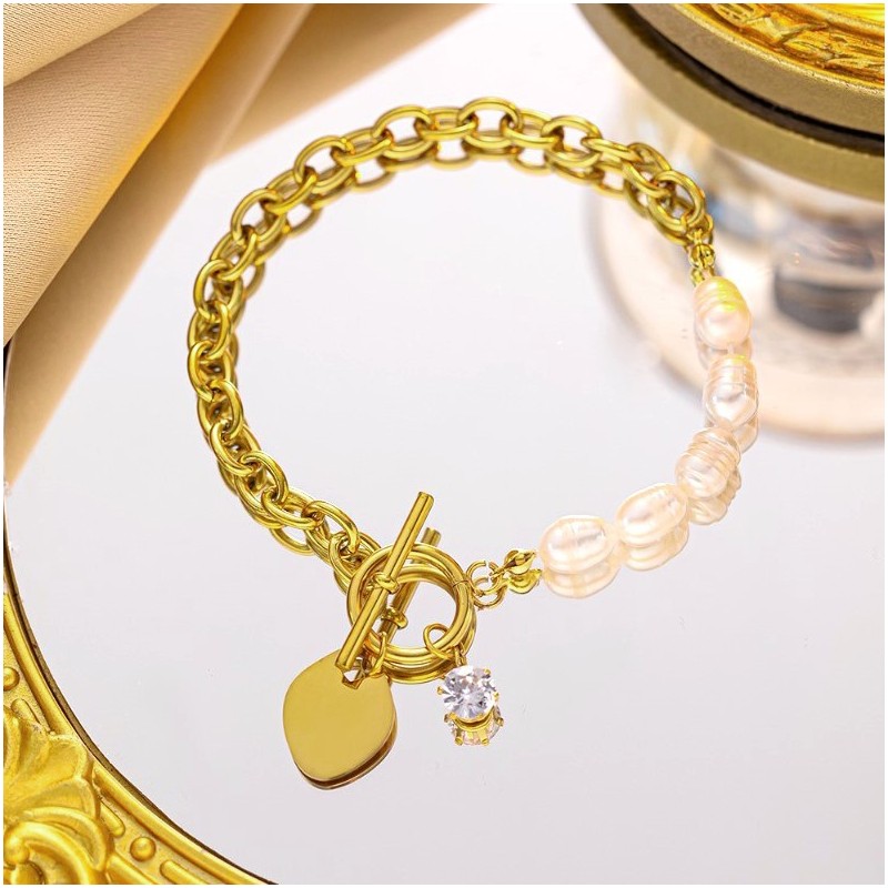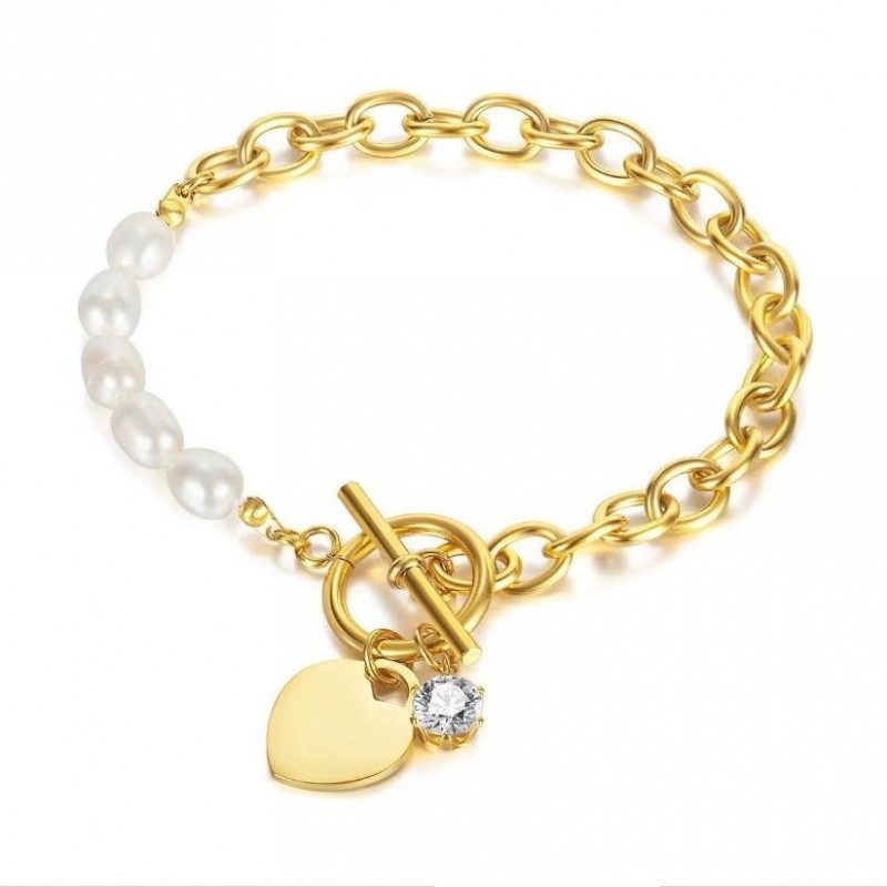 Bransoletka na rękę stal chirurgiczna pozłacana 14k złotem, PEREŁKI BST1515