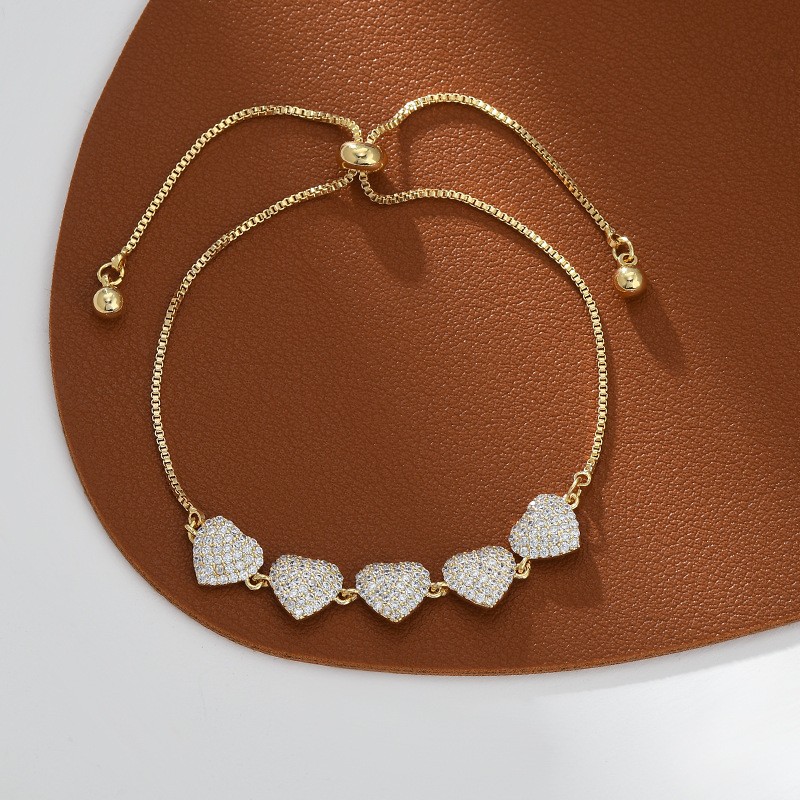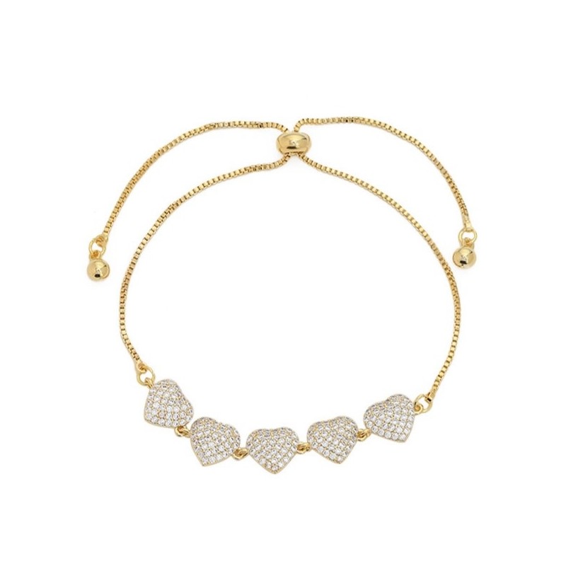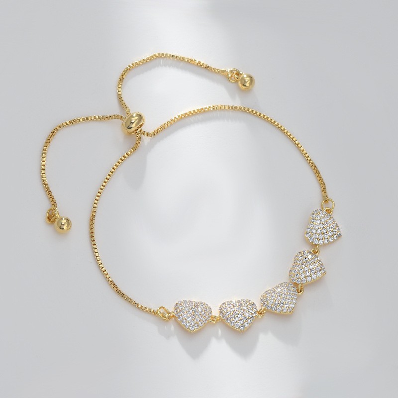 Bransoletka na rękę stal chirurgiczna pozłacana 14k złotem, SERCA cyrkonie BST1534