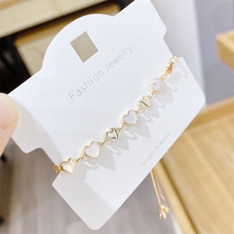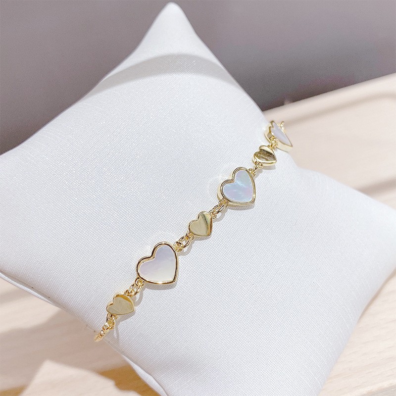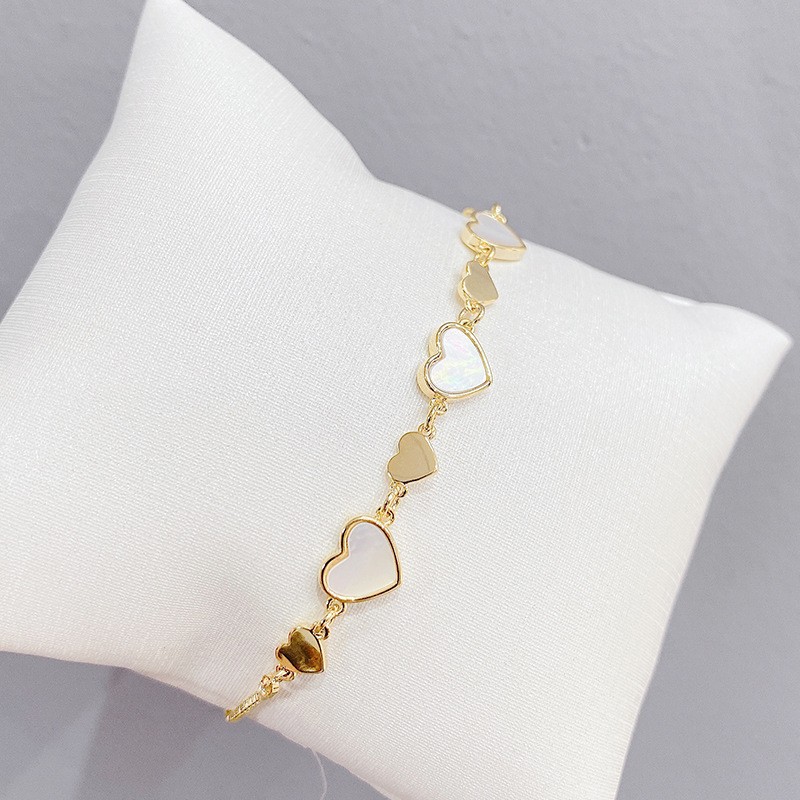 Bransoletka na rękę stal chirurgiczna pozłacana 14k złotem, SERCA masa perłowa BST1532
