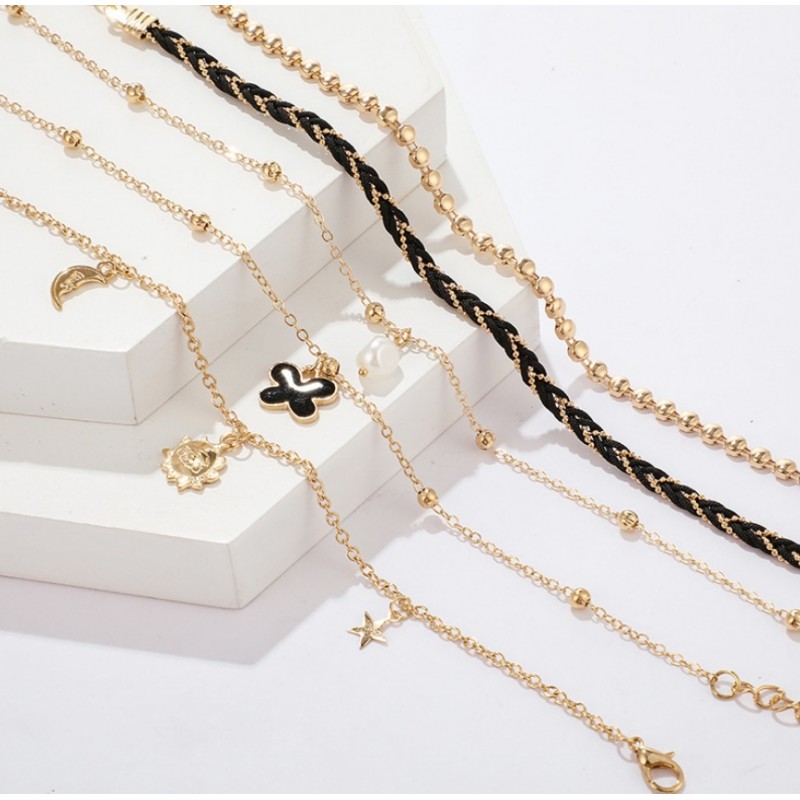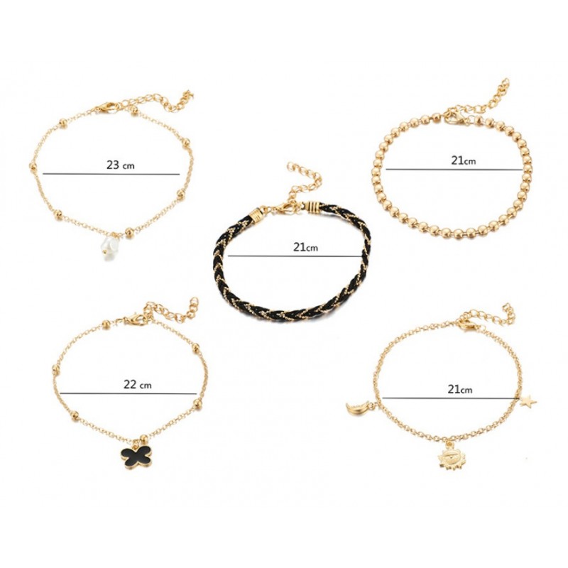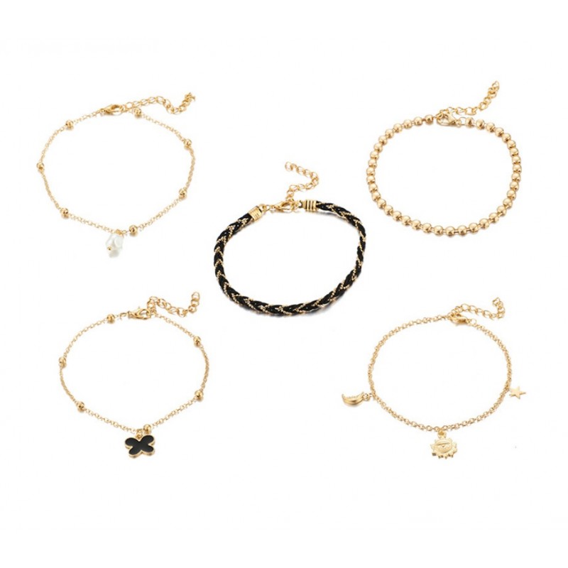 Bransoletka na stopę 5w1 złota koraliki B517