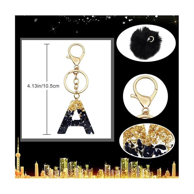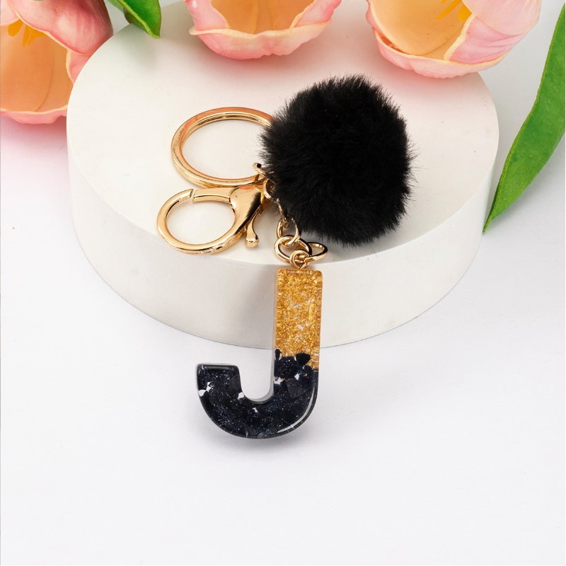 Brelok do kluczy LITERKA "J" czarno-złota z pomponem, żywica BRL342J