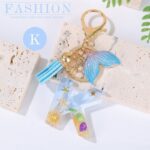 Brelok do kluczy LITERKA "M" , MORSKI, ogon syreny, muszelki, frędzle BRL353M
