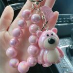 Brelok do kluczy, perłowy Miś z koralikami Kremowy BRL366K
