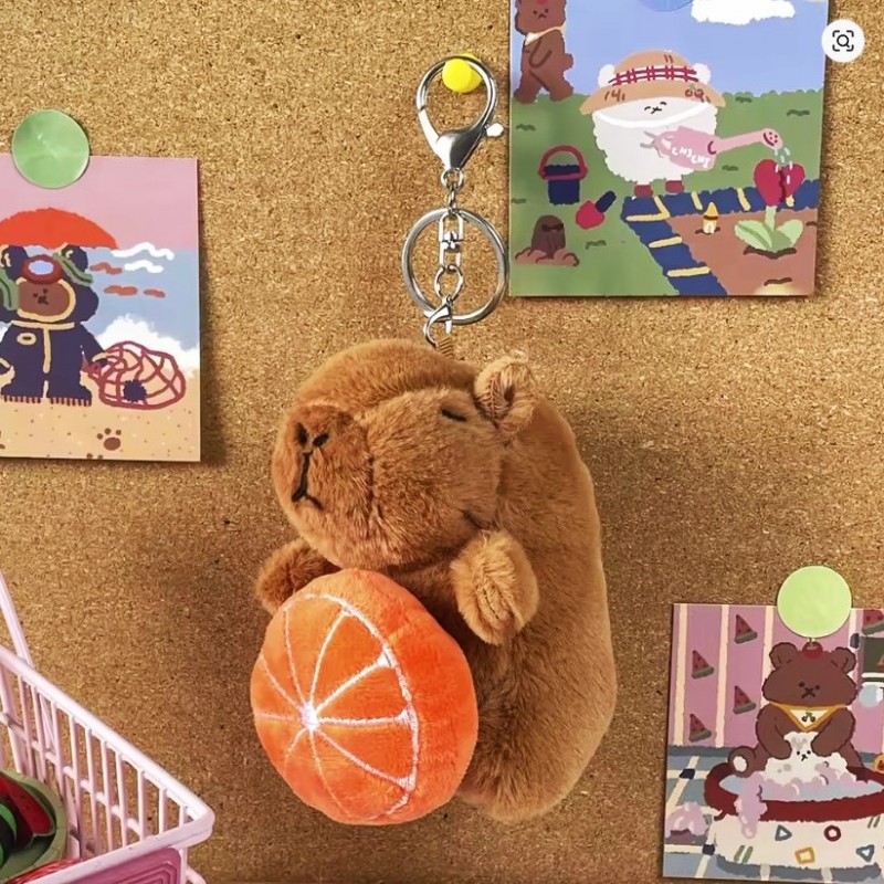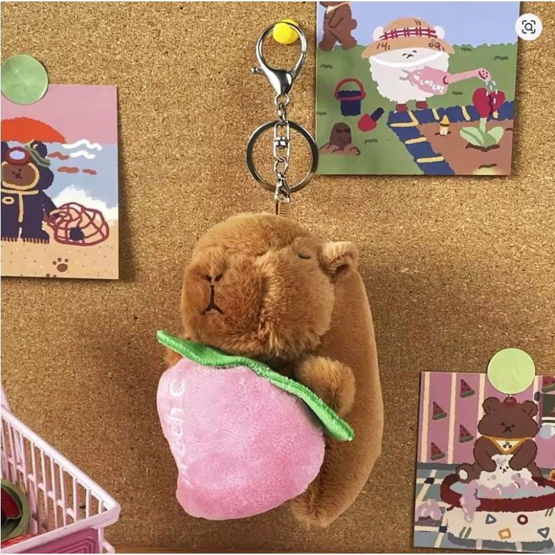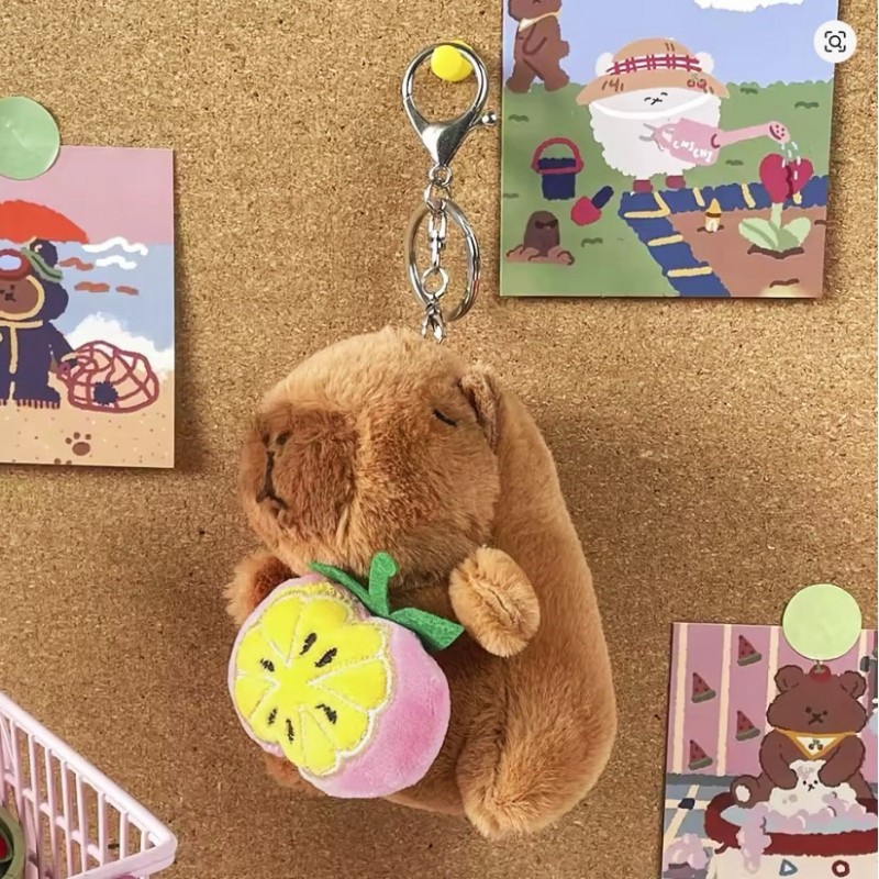 Brelok do kluczy pluszowa, puchata Kapibara naciągane owoce 1szt. LOSOWY MODEL BRL395
