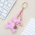 Brelok do kluczy skórzany MIŚ fuksja, frędzle BRL357